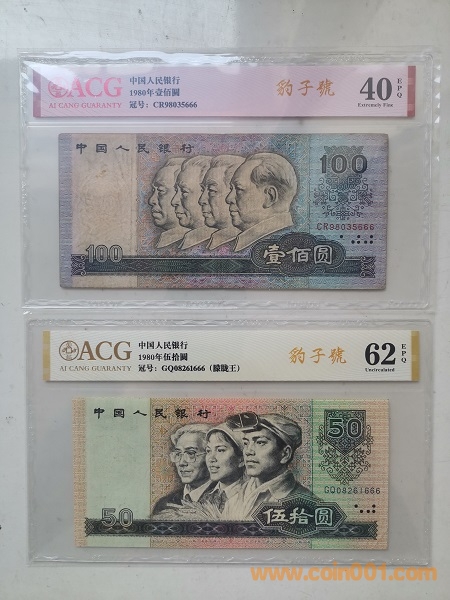 本套幣除了無4、7尾號為吉祥號666這一特征外,還有多張具有好號碼的其他特征。其中,倒置號3張(8010,805,902),朦朧王2張(8050,802),朦朧號2張(90100,961),鉆石號1張(9050)。由于80100和8050的稀缺性,尋找這二張尾號666品相稍微好一點(diǎn)的豹子號實(shí)在是太難了。現(xiàn)在尚且如此,相信將來更不好找。在改*號幣層出不窮的今天,真品難得啊。另附皮質(zhì)精美珍藏冊和手提袋,無論是個(gè)人收藏還是饋贈親友,都是一件珍貴、完整、成熟的收藏品。15000元包順豐。