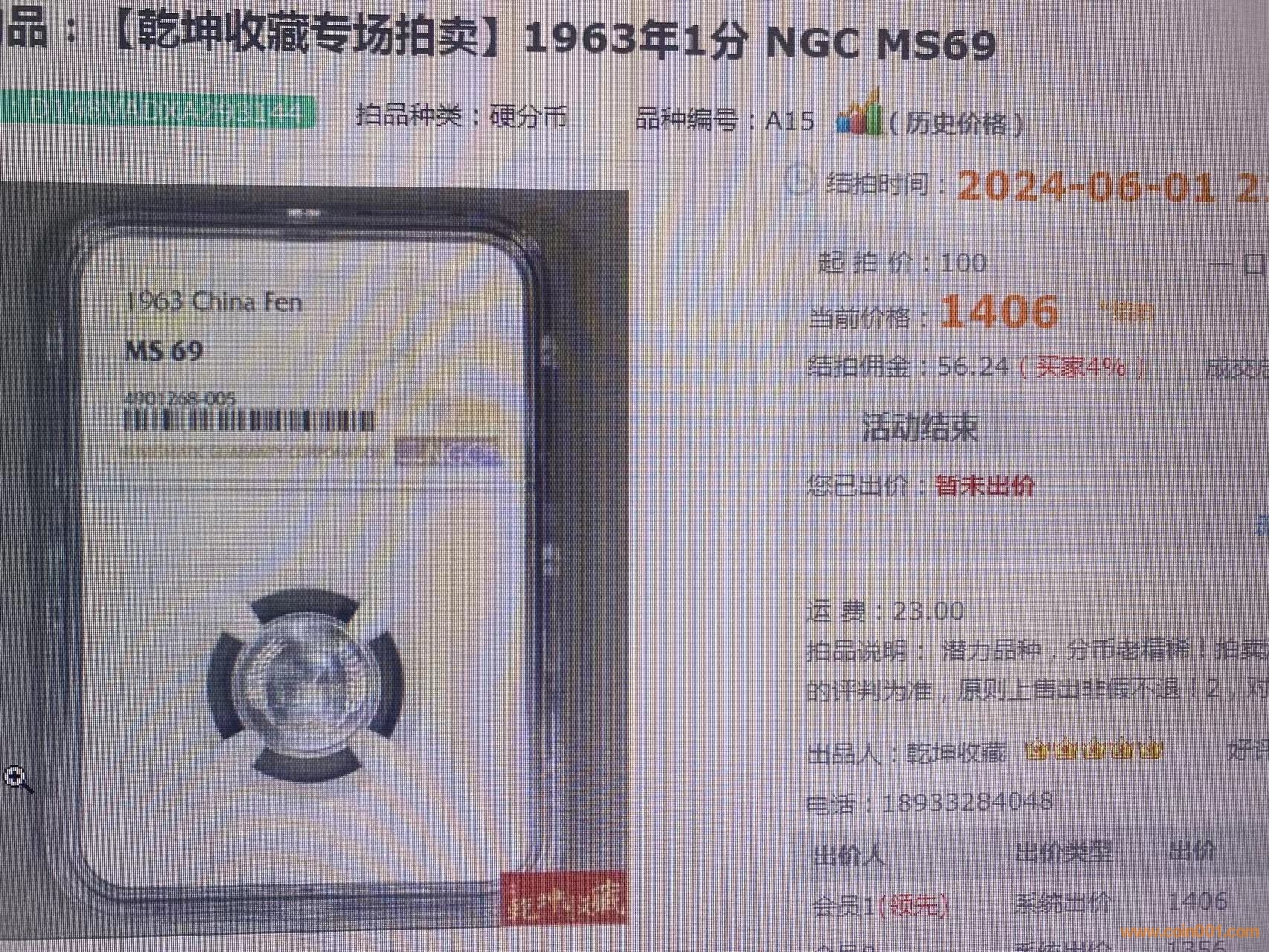 按拍賣價出讓一枚69分 ..