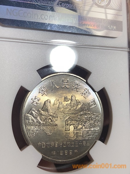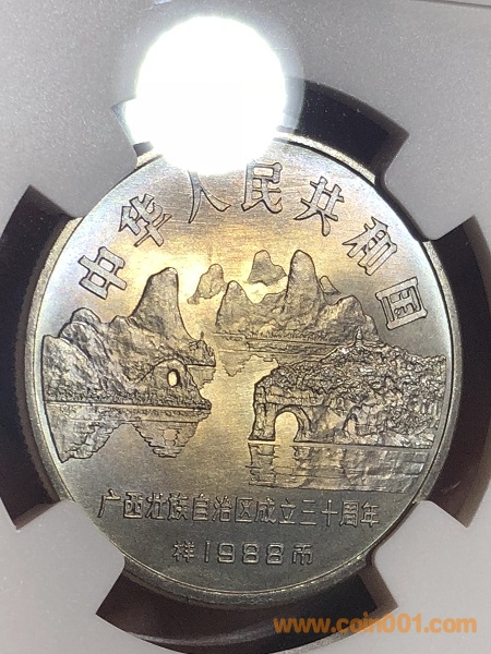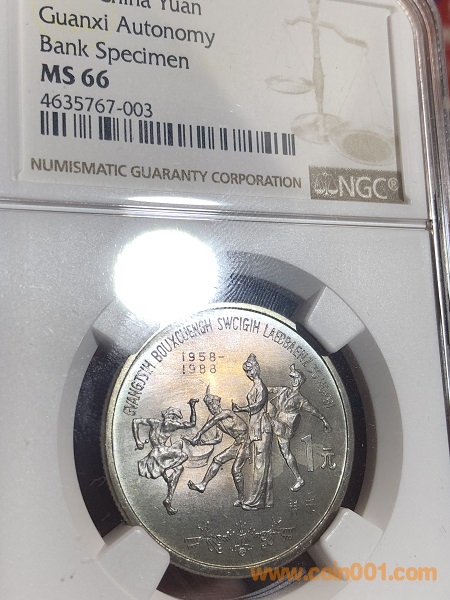 圖片:NGC MS66廣西樣幣  五彩絕美包漿 少見(jiàn)亮彩幣 光澤度佳 帶原包裝正面.jpg