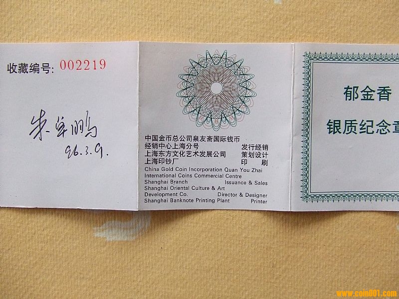 1996年郁金香紀念銀章 ..