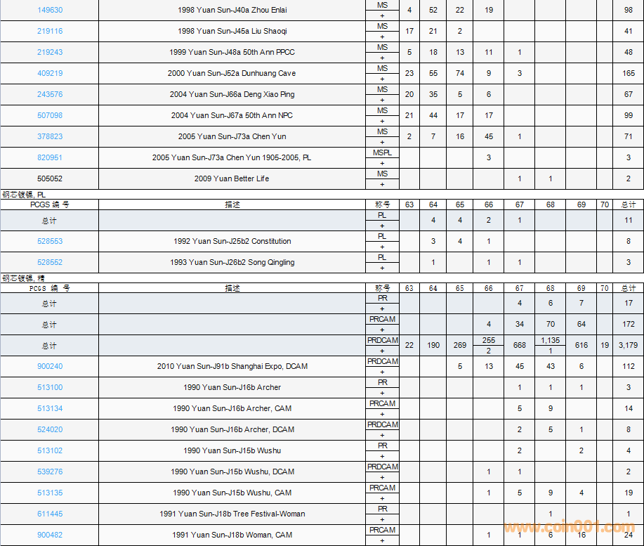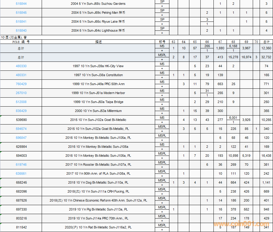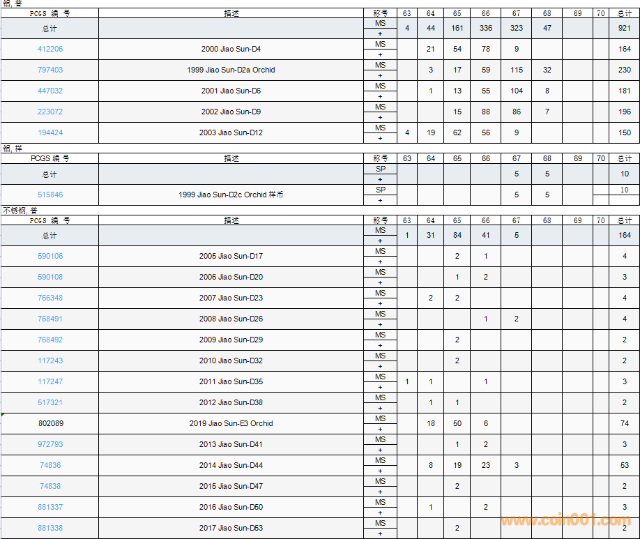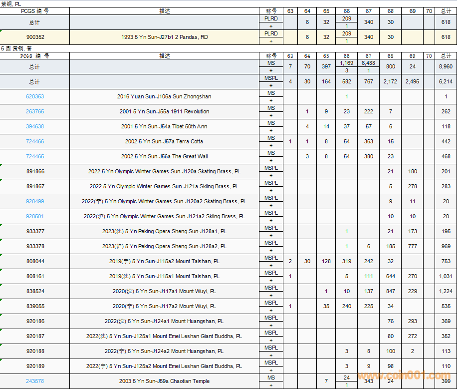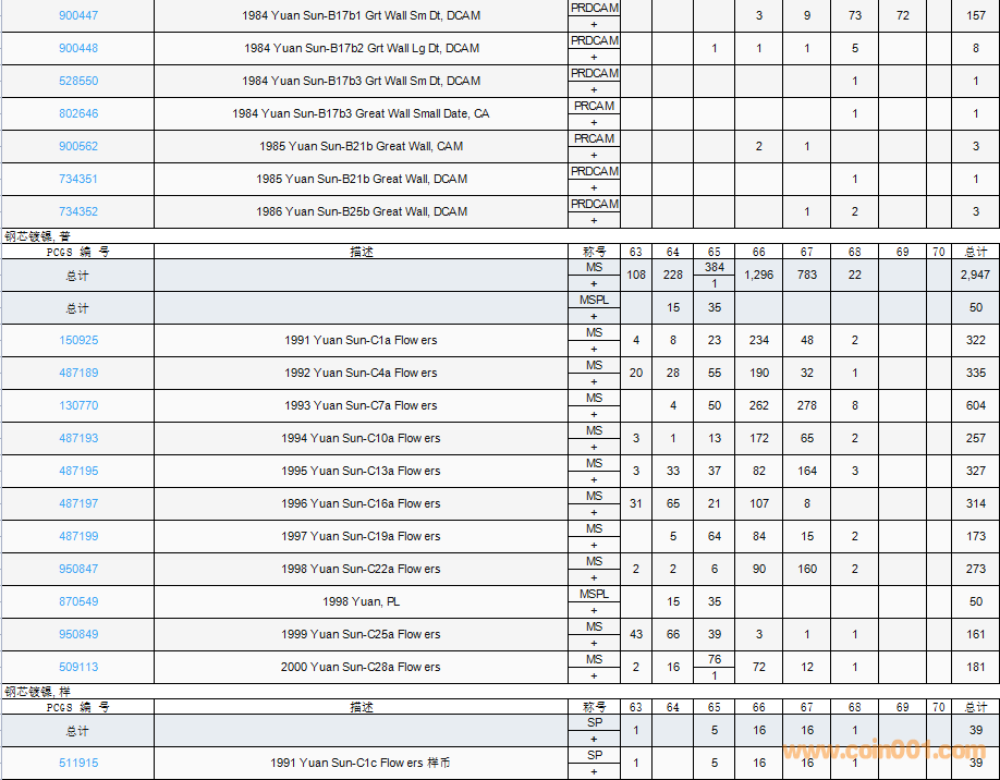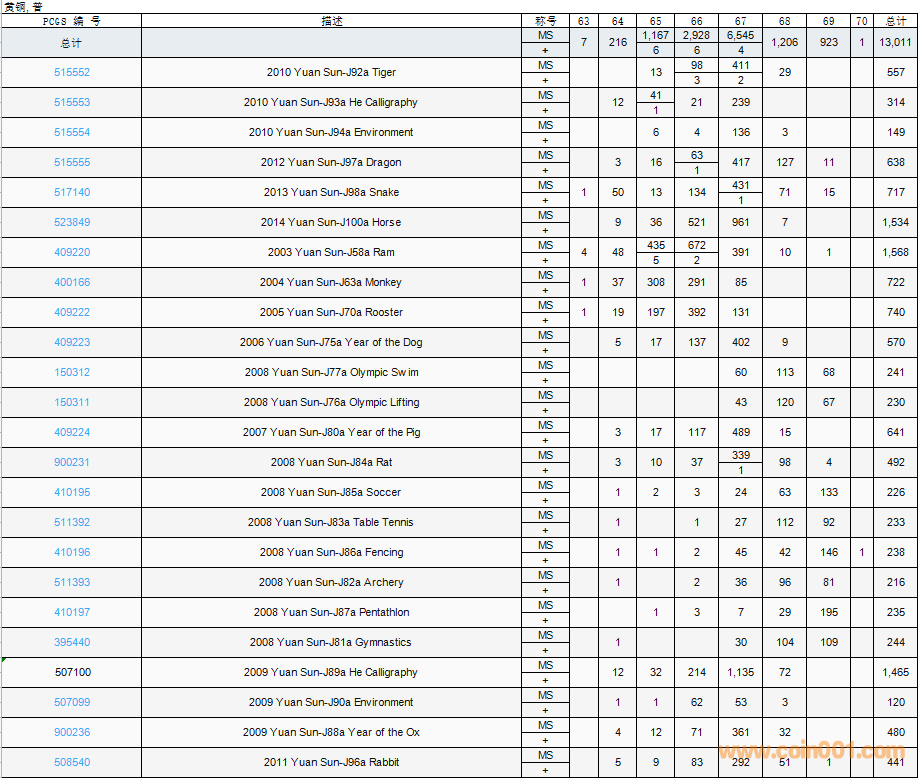 PCGS硬幣評(píng)級(jí)數(shù)量報(bào)告( ..