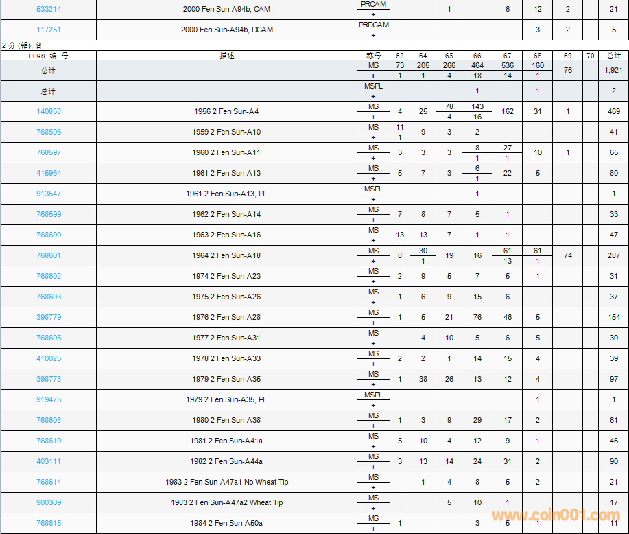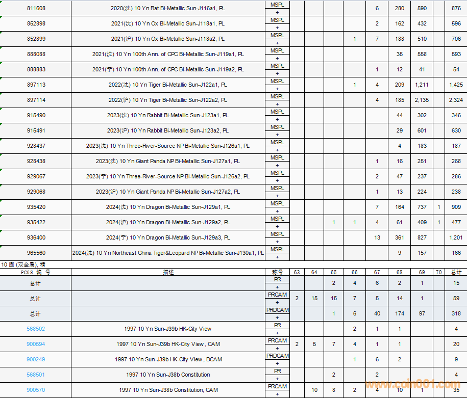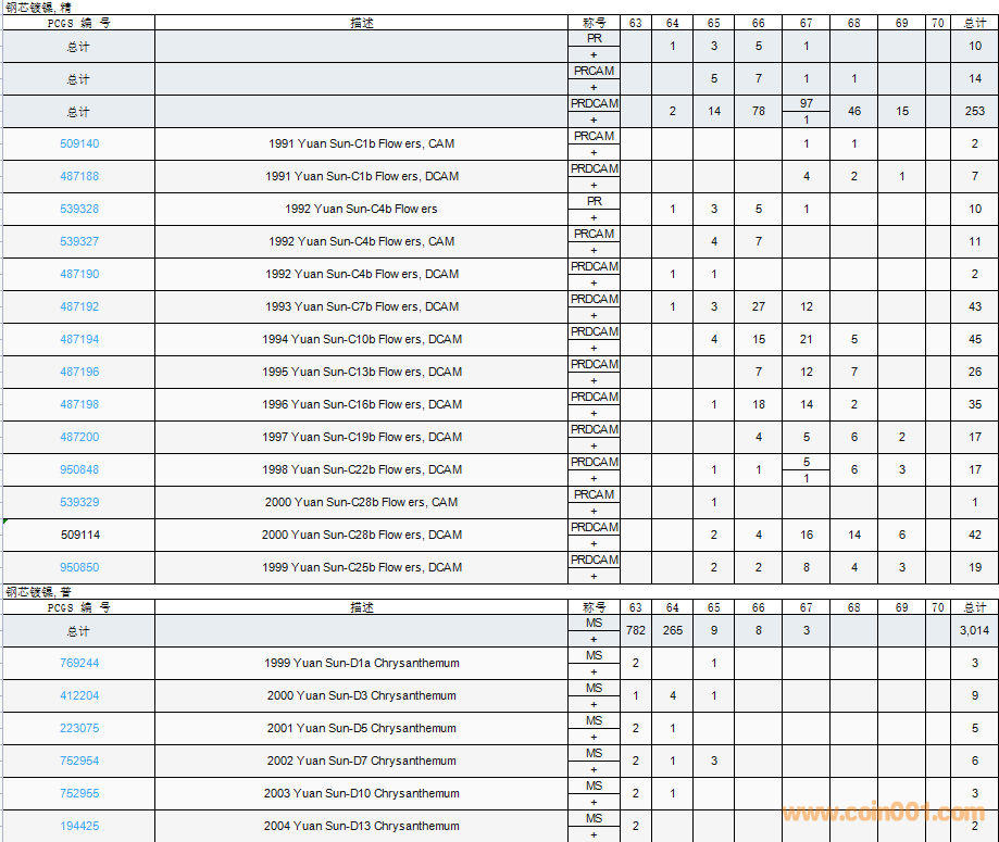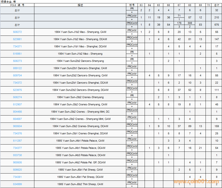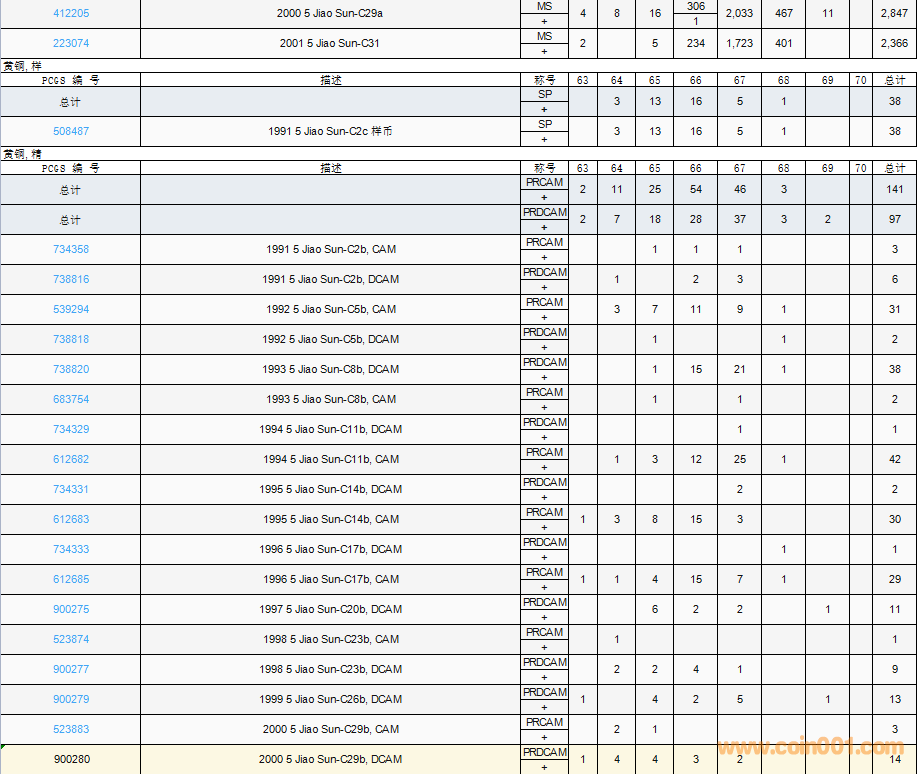PCGS硬幣評(píng)級(jí)數(shù)量報(bào)告( ..