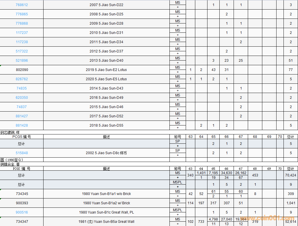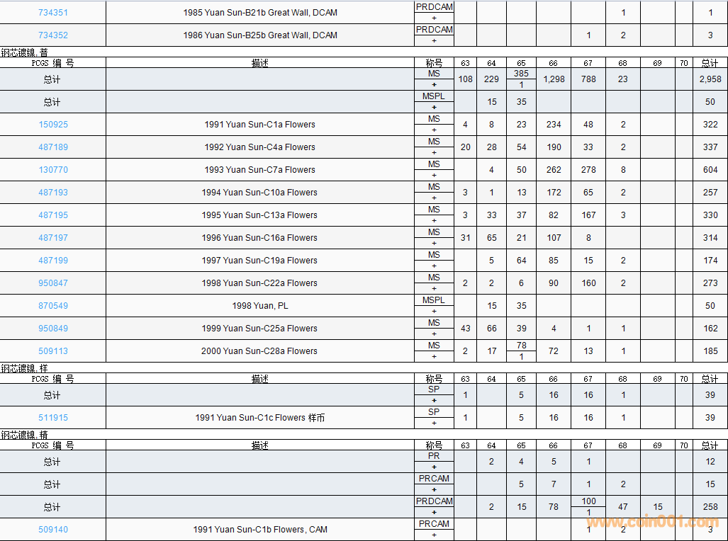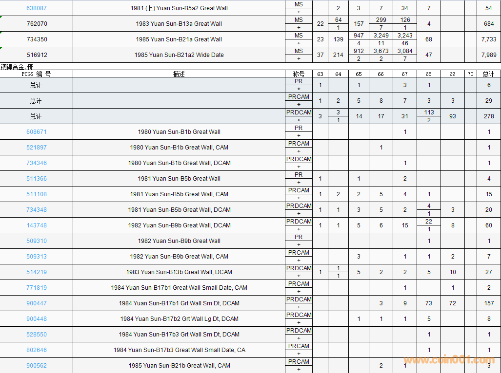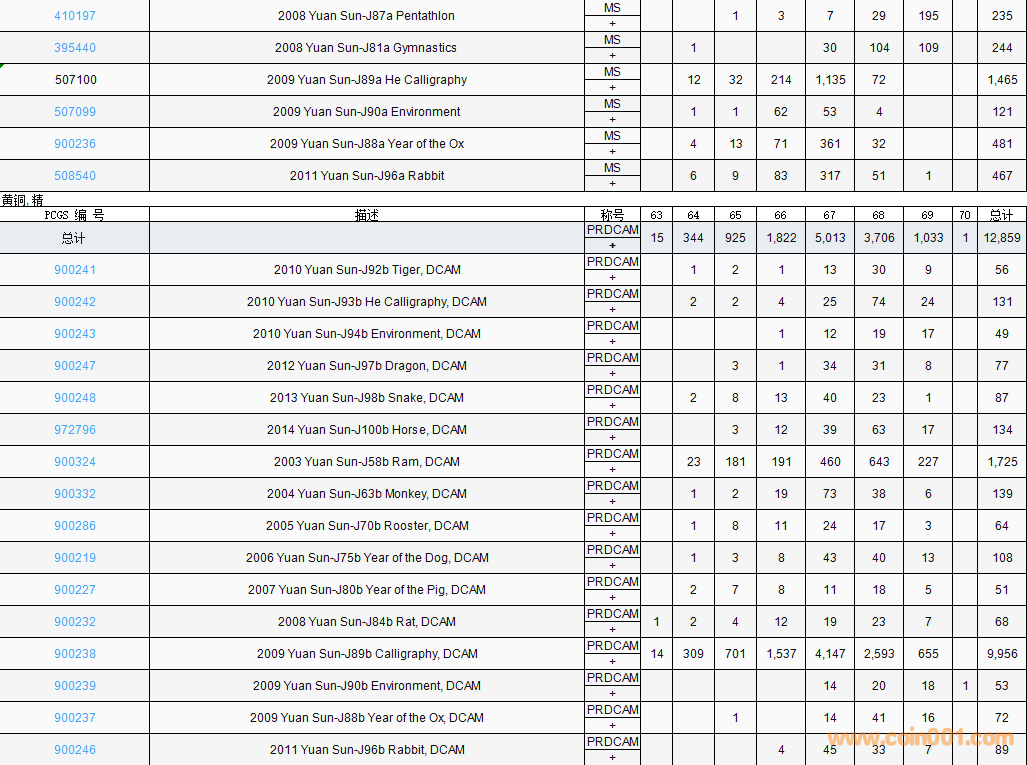 PCGS硬幣評級數(shù)量報告( ..