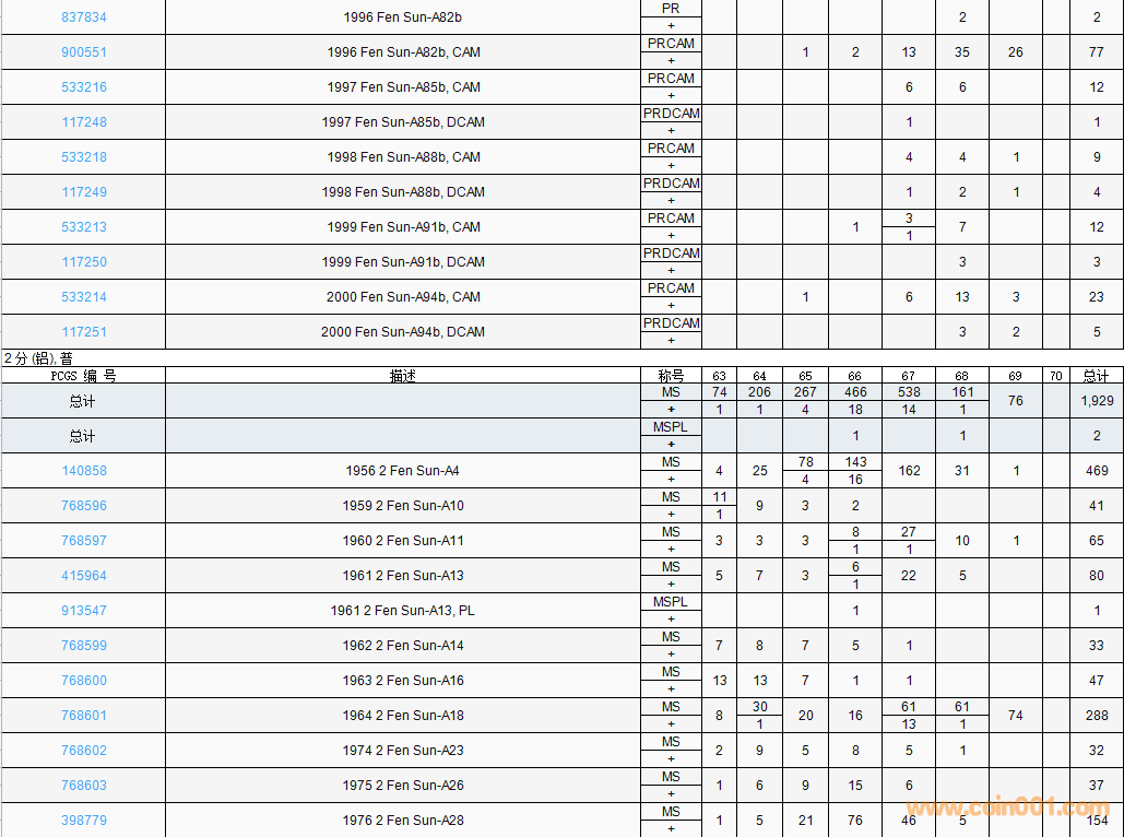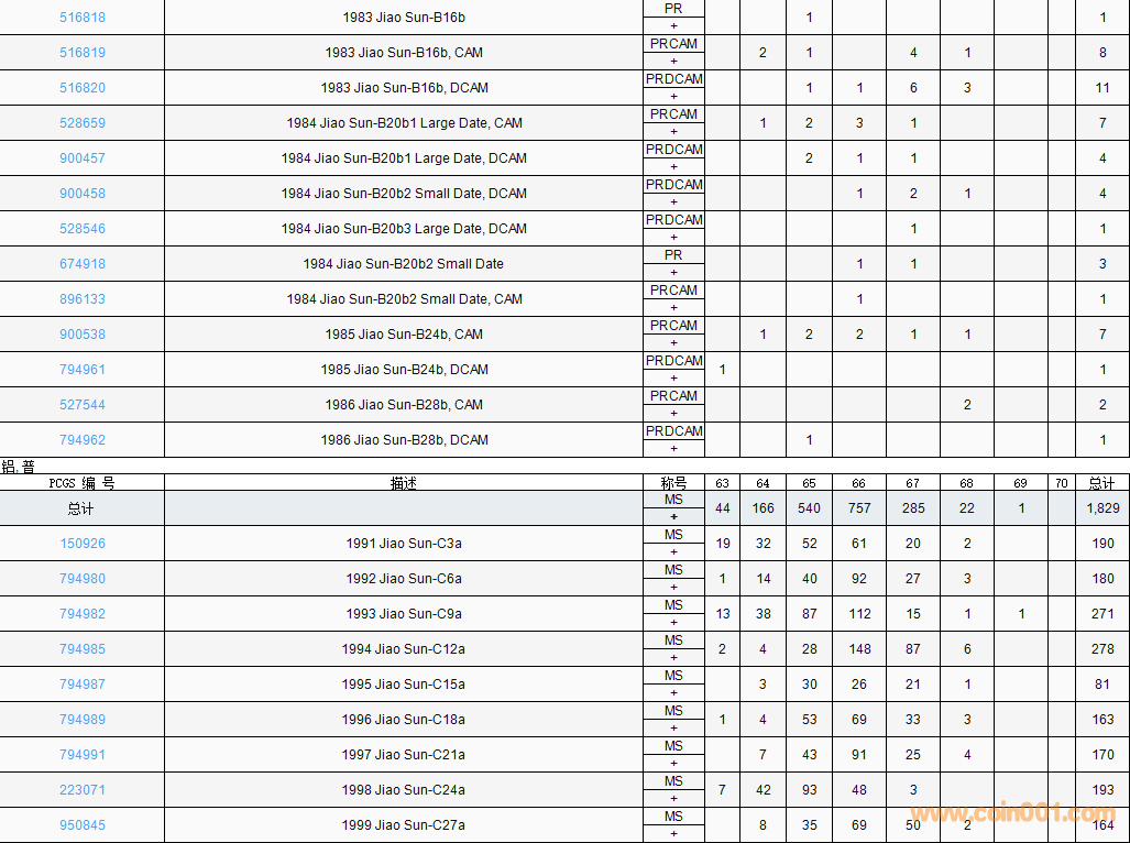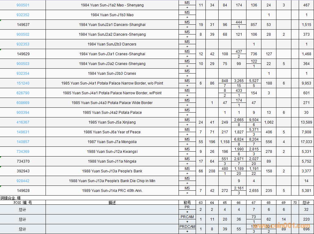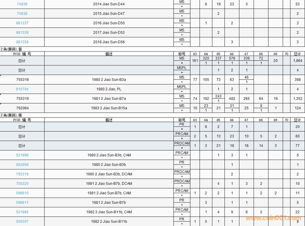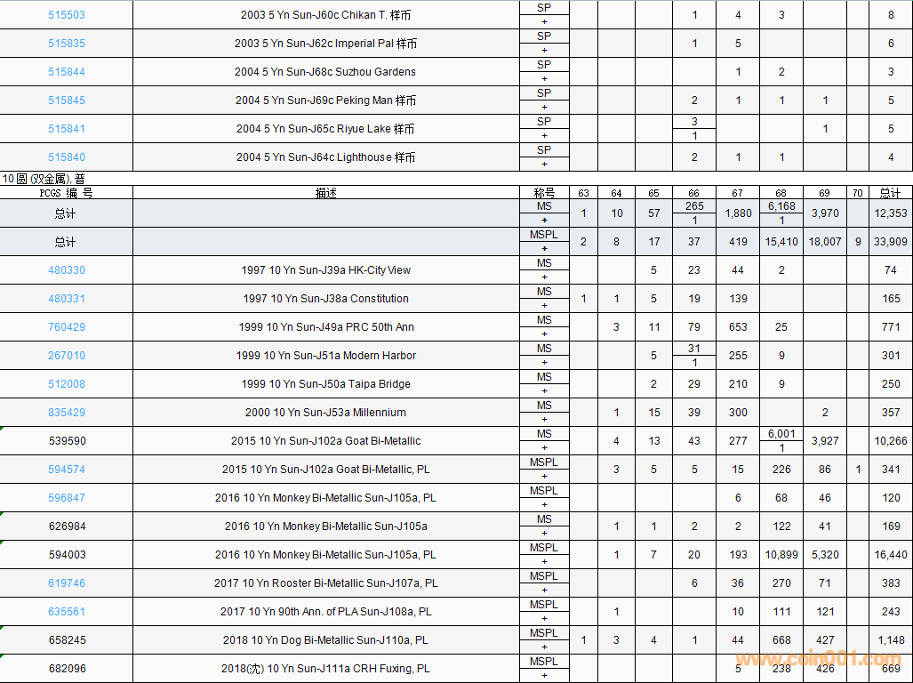 PCGS硬幣評級數(shù)量報告( ..