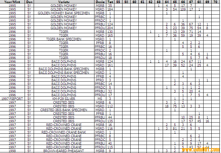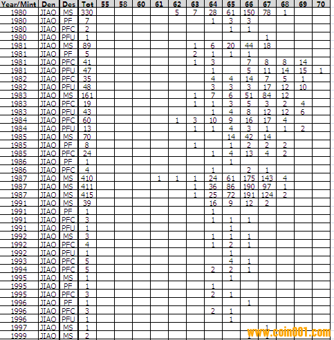 NGC硬幣評(píng)級(jí)分?jǐn)?shù)分布 ..