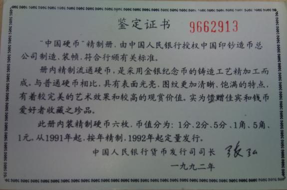91精制套幣證書鑒定