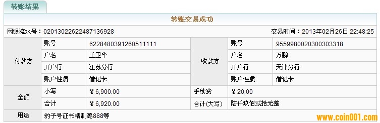 引用 引用第14樓廣天藏品于2013-02-25 15:35發(fā)表的 : 電話聯(lián)系確認(rèn): 證書號(hào)15888正版精制雞幣絕品裝幀卡全新1400元 證書號(hào)09888反版精制雞幣絕品裝幀卡全新1400元 證書號(hào)03999號(hào)精制豬,幣絕品裝幀卡全新 1000元 證書號(hào)04000號(hào)精制豬,幣絕品裝幀卡全新 900元 .......