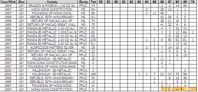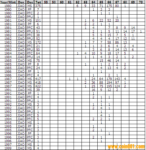 NGC硬幣評級分?jǐn)?shù)分布 ..