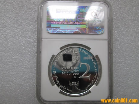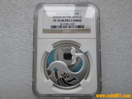 二. 發(fā)行:以色列國(guó)家銀行;鑄造:耶路撒冷造幣廠;材質(zhì): 92.5% 銀;數(shù)量:2800枚[稀少,世界范圍發(fā)行];重量: 28.8克;直徑: 38.7毫米;面值: 2新謝克爾;銀幣正面上緣中央為以色列國(guó)徽,國(guó)徽下方為希伯來文、英文和阿拉伯文以色列國(guó)名,和周圍“約拿在鯨魚腹中”字樣;中央刊面額,此枚銀幣得來頗為不易,遙遙千里,幾番輾轉(zhuǎn),歷經(jīng)時(shí)日。