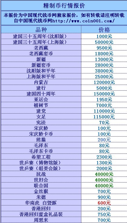 普通(精制)紀念幣交易