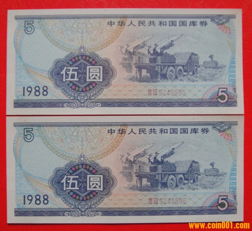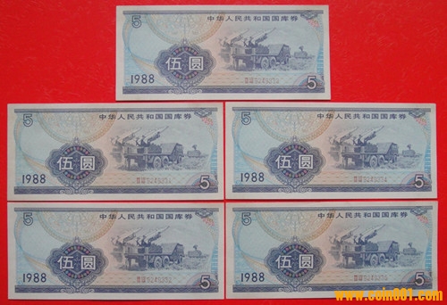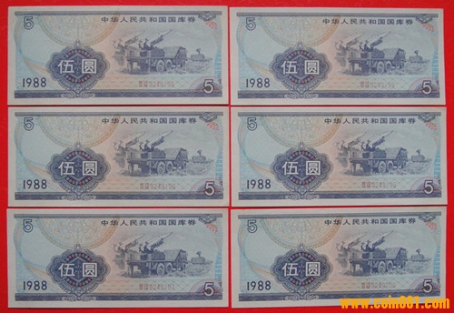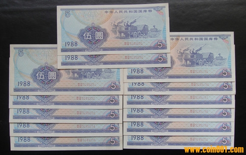 國(guó)庫(kù)券1988年伍圓/13張 ..