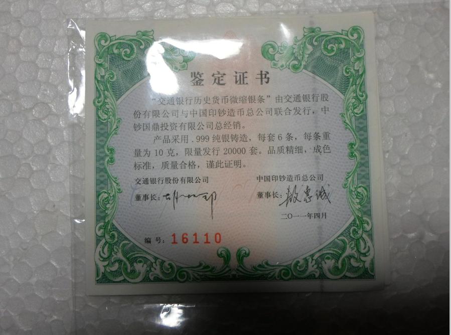 求交通銀行微型貨幣小銀條