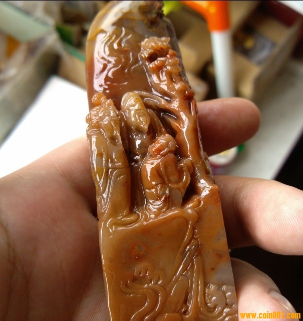 (3)壽山石印章之馬背山水人物薄意章,沒(méi)有缺陷,章高:9.3公分,章面:2.5公分*2.5公分,壽山石品種之一都成坑馬背石,質(zhì)地很好,色澤漂亮,石性穩(wěn)定,手工雕刻,三包天然壽山石,包石頭天然原色;刻劃人物傳神,石質(zhì)溫潤(rùn)熟美,章料彰顯大氣,文雅之士必備用品,價(jià)格:800元,具體圖片請(qǐng)看三樓的圖片。