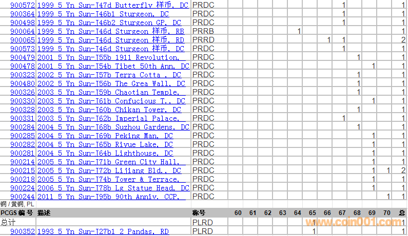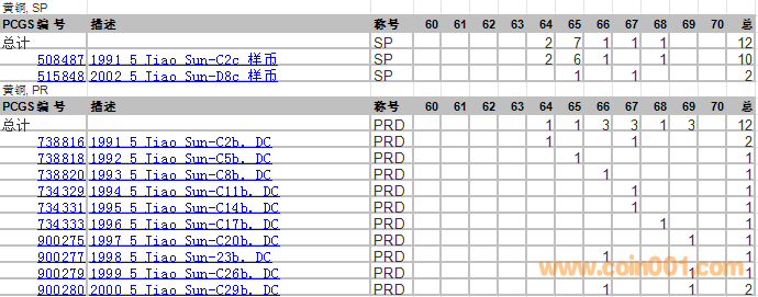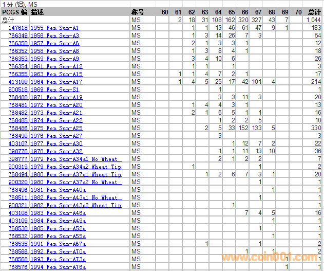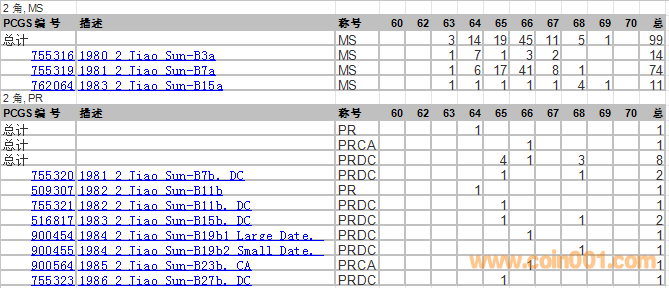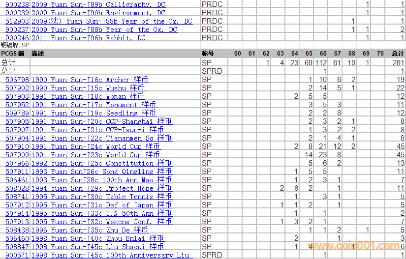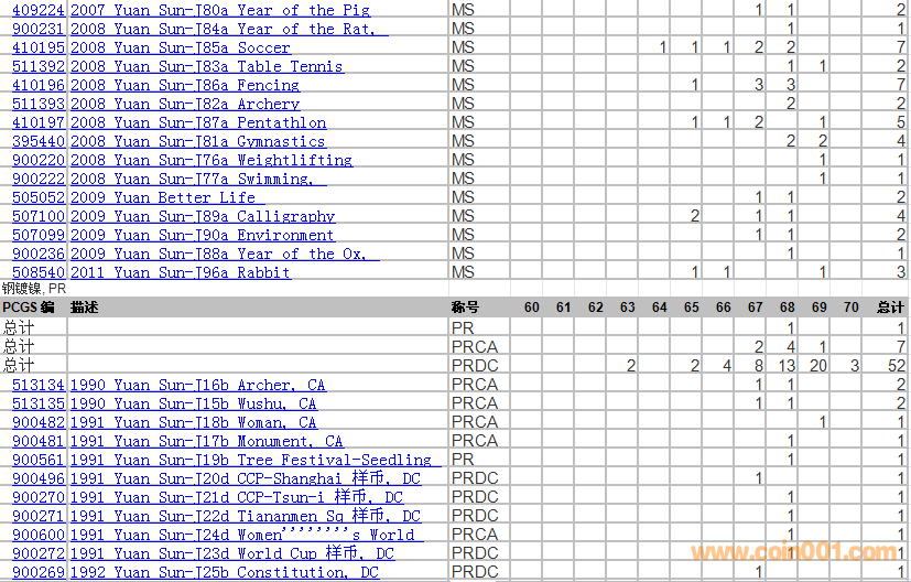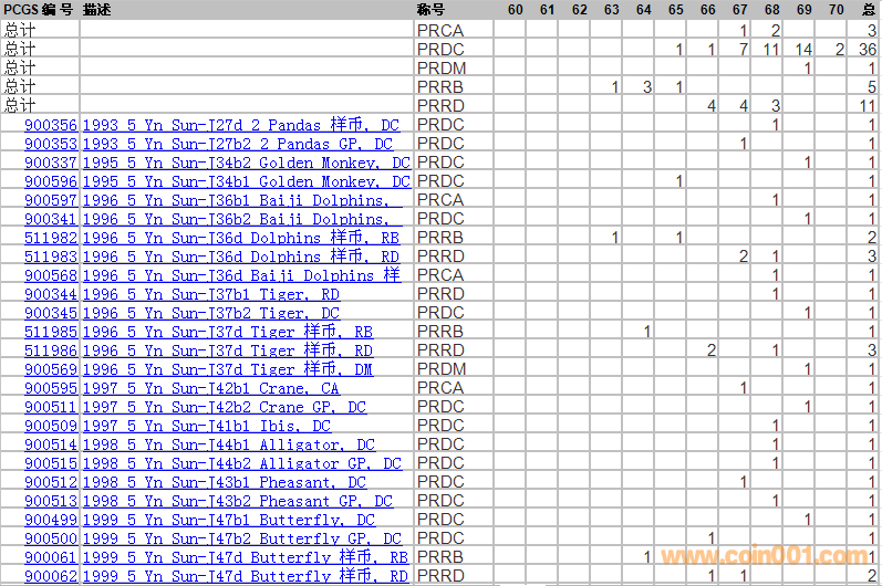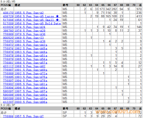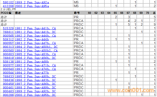 PCGS硬幣評(píng)級(jí)分?jǐn)?shù)分布 ..
