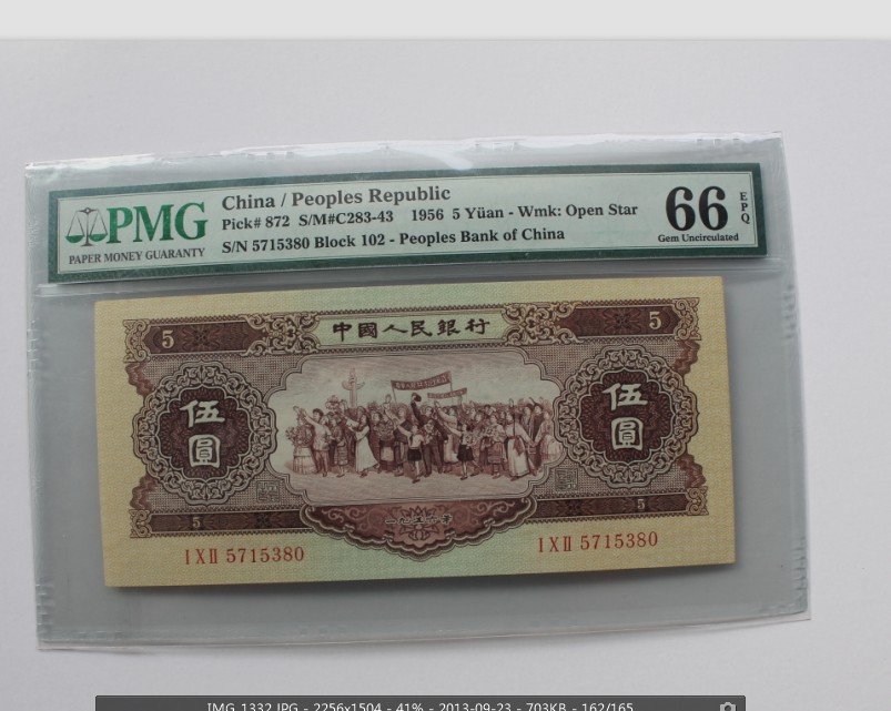出一張PMG66分黃五元, ..