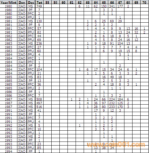 NGC硬幣評級分?jǐn)?shù)分布 ..