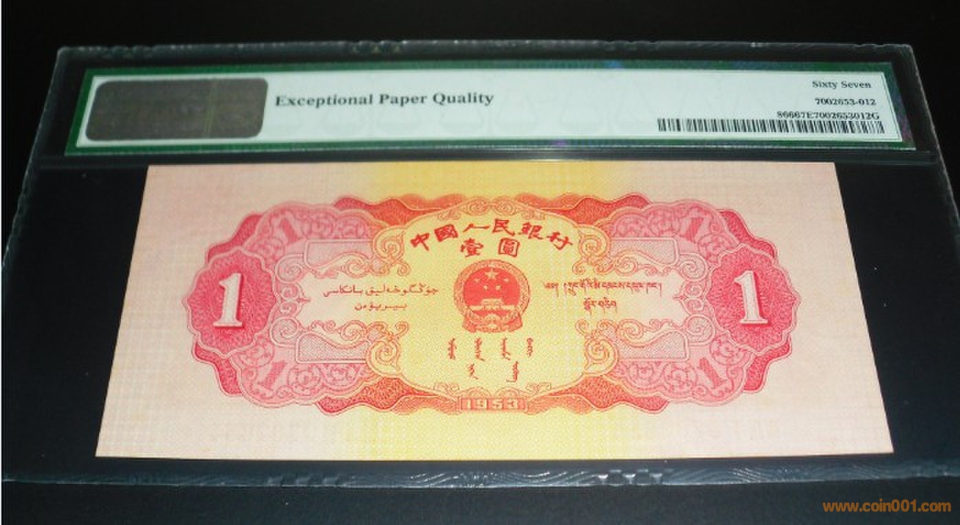 PMG.67分二版.紅一元.