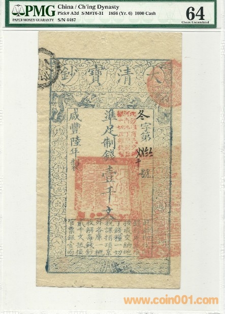 PMG  64  大清寶鈔 1000文  2000問
