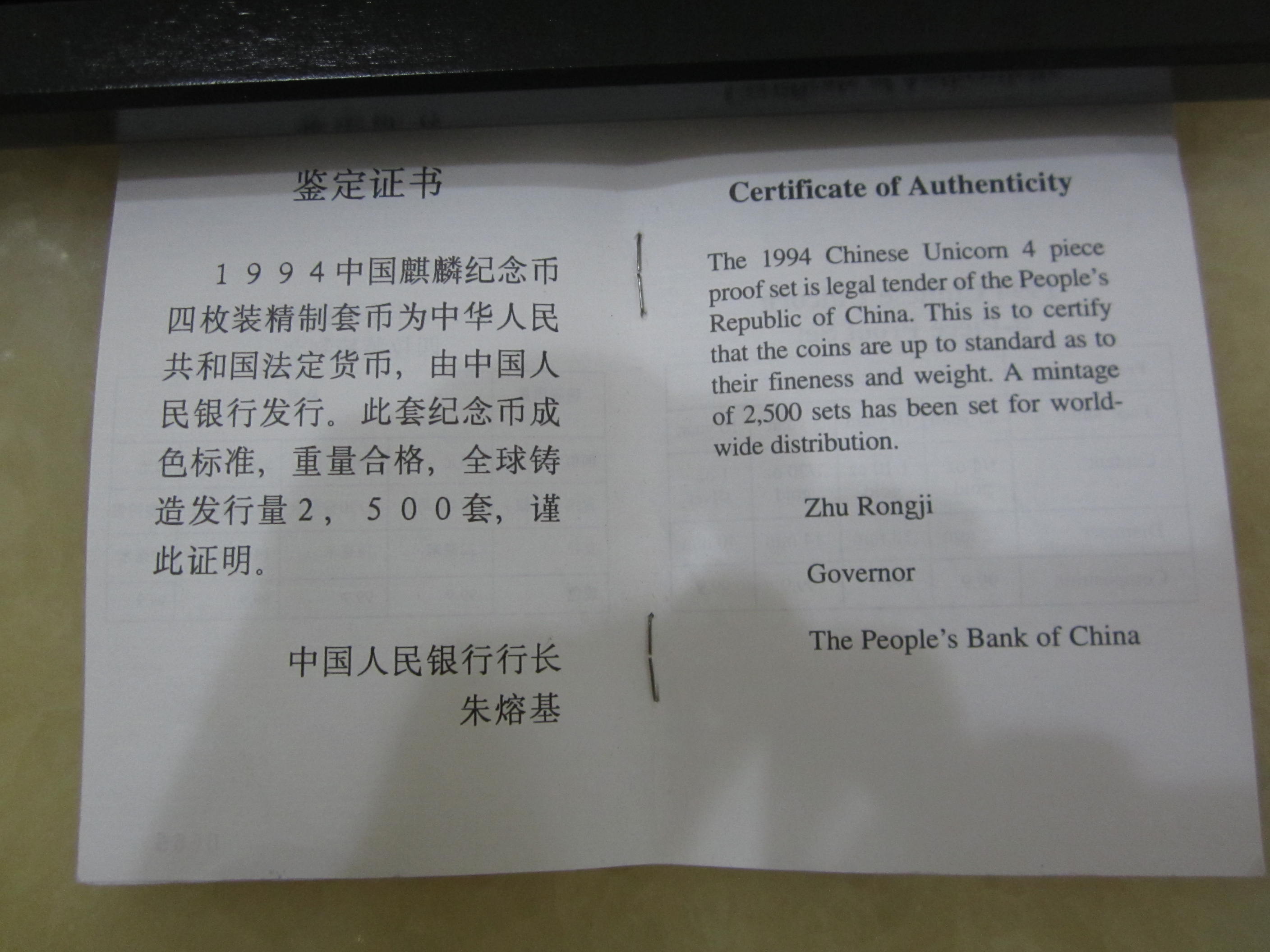 1994 麒麟4枚套裝