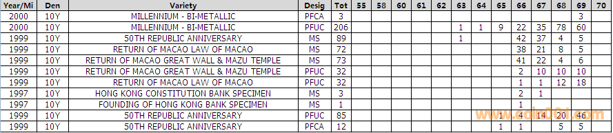 NGC硬幣評(píng)級(jí)分?jǐn)?shù)分布 ..