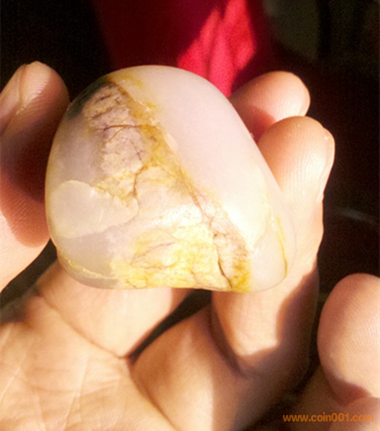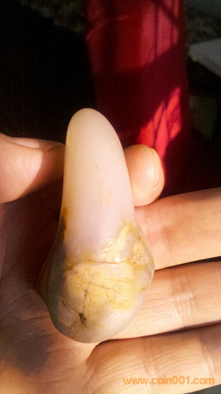 此新疆和田玉籽料原石,重70克(商用電子稱稱的,實(shí)重只會(huì)大于70克)55X31X25 此籽白度好,全身細(xì)密毛孔,玉質(zhì)很細(xì)膩干凈油潤,有僵皮,是個(gè)可以借僵巧做活的好籽料。單價(jià)7300元。