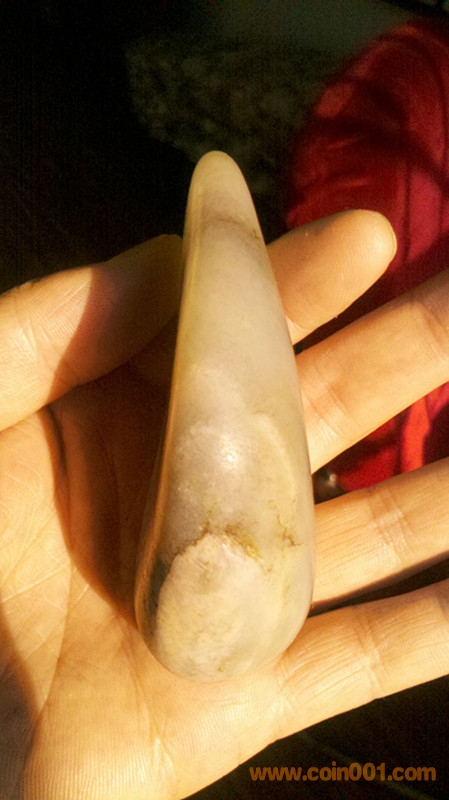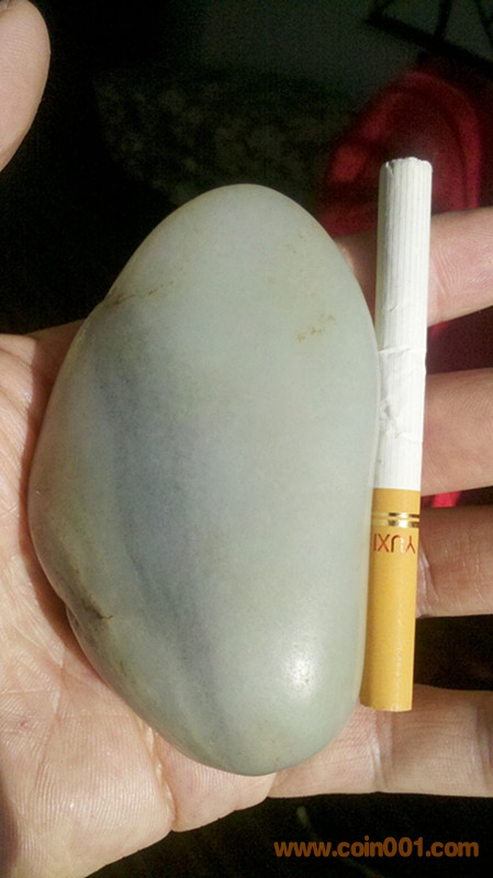 新疆和田玉原籽重180克 85X50X30MM 此籽毛孔清晰玉質油潤,打燈見結構,在側面有僵,入肉不深,形好,大小一把抓,可雕可直接把玩。實價2800元