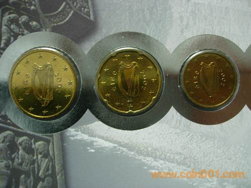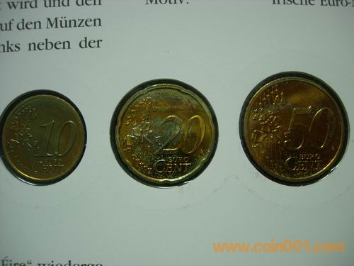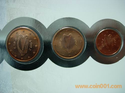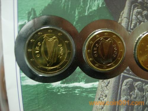 1、2、5分 10分 50分 1、2元  2002版愛爾蘭歐元幣封,幣有自然氧化。158元出售。