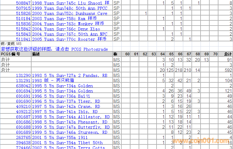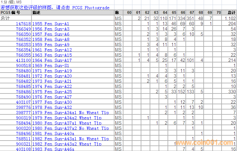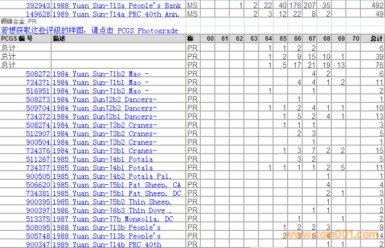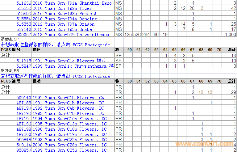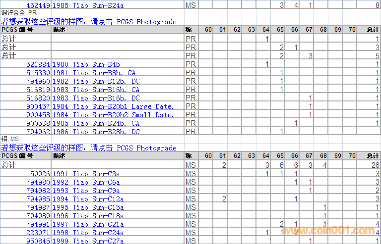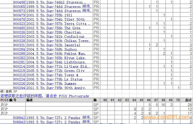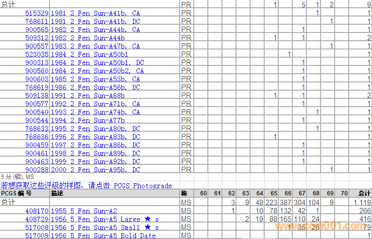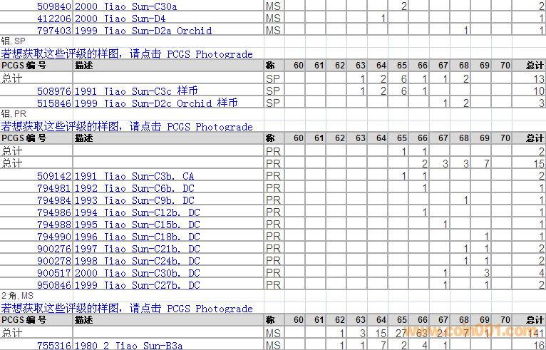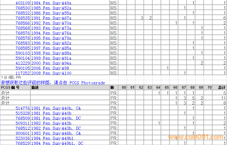PCGS硬幣評(píng)級(jí)分?jǐn)?shù)分布 ..