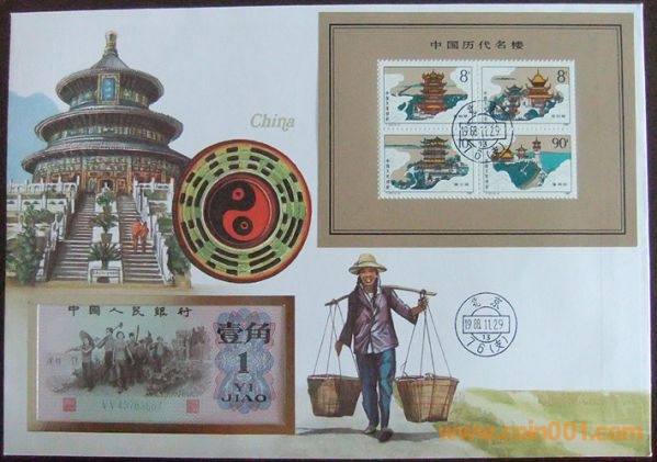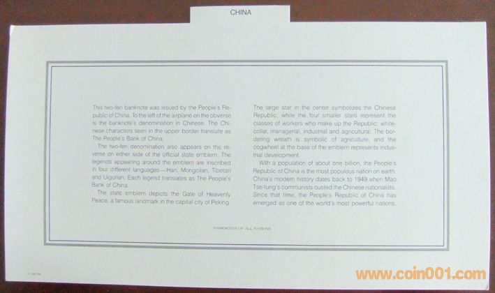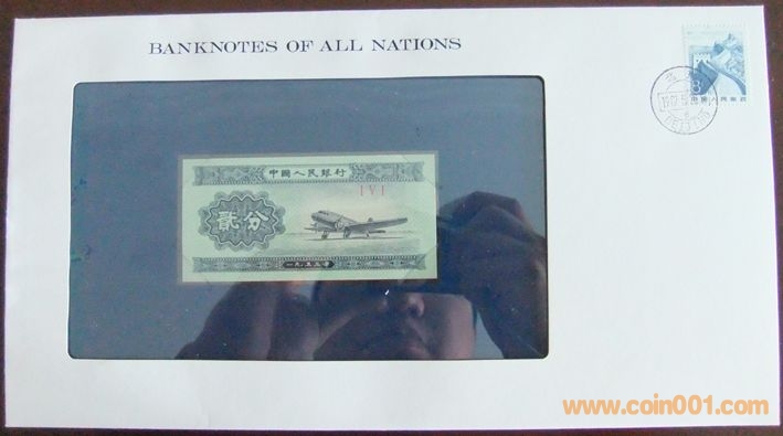 中國1953年無號(hào)2分富蘭克林裝幀幣封 95元