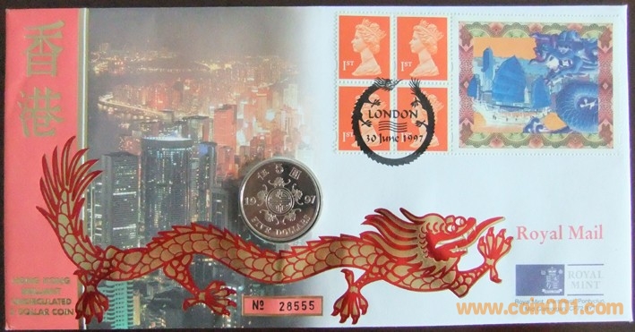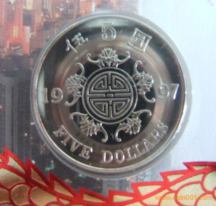 香港1997年香港回歸5元精制流通幣封 120元