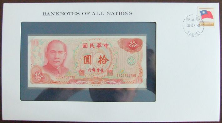 中華民國臺(tái)灣銀行民國六十五年拾圓富蘭克林裝幀幣封 88元