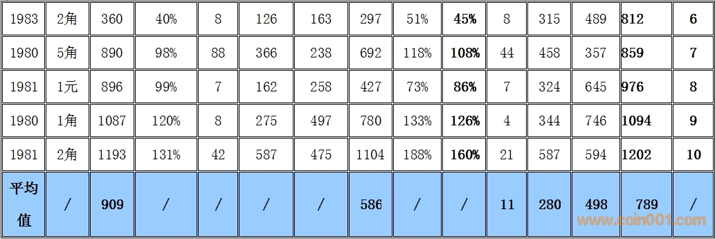 甘兄您好,非常感謝您的提醒?。。。£P(guān)于您提及的8005的MS68PL我沒有注意,我考慮在下次排序時(shí)將所有的PL數(shù)據(jù)合并到難度排序,對(duì)于普制長城幣我的了解還比較少,您是這個(gè)領(lǐng)域的領(lǐng)軍人物,希望您以后給我多提寶貴的建議,關(guān)于5角的送評(píng)難度我之前就有相同的感覺,自從我看了網(wǎng)站境外會(huì)員王兄關(guān)于模具損耗的文章我找到了一個(gè)正確的解釋,排除材料的問題,如果是相同的材料通常模具的耗損與幣的直徑有一定的關(guān)系,幣的直徑越小模具的使用壽命就越長和模具磨損的速度(模具表面的金屬流動(dòng))越緩慢,高品質(zhì)幣的生產(chǎn)數(shù)量就相對(duì)越多,關(guān)于送評(píng)數(shù)量我覺得溢價(jià)是推動(dòng)送評(píng)數(shù)量上升的主要因素,溢價(jià)與裸幣之間的關(guān)系不是非常密切,當(dāng)一個(gè)年份的評(píng)級(jí)溢價(jià)大幅上升的話送評(píng)的動(dòng)力就會(huì)加強(qiáng)(8101,8105等年份送評(píng)的溢價(jià)比較低導(dǎo)致送評(píng)數(shù)量非常少),如果送評(píng)數(shù)量大幅度上升,冠軍分?jǐn)?shù)段的送評(píng)數(shù)量沒有變化的話它的難度將不斷的提高價(jià)格也會(huì)不斷的上升,反之它的價(jià)格會(huì)有明顯的起伏,因此我們可以得出一個(gè)結(jié)論送評(píng)不光是冠軍分的多少,送評(píng)總數(shù)也非常重要,801就是一個(gè)范例,雖然它的冠軍分有十多枚,但是它的送評(píng)總數(shù)多,它的評(píng)級(jí)難度同樣得到體現(xiàn),我相信隨著時(shí)間的推移,評(píng)級(jí)幣價(jià)格將不斷的修正和送評(píng)量不斷的增加,評(píng)級(jí)難度排序的準(zhǔn)確性將不斷的提高.