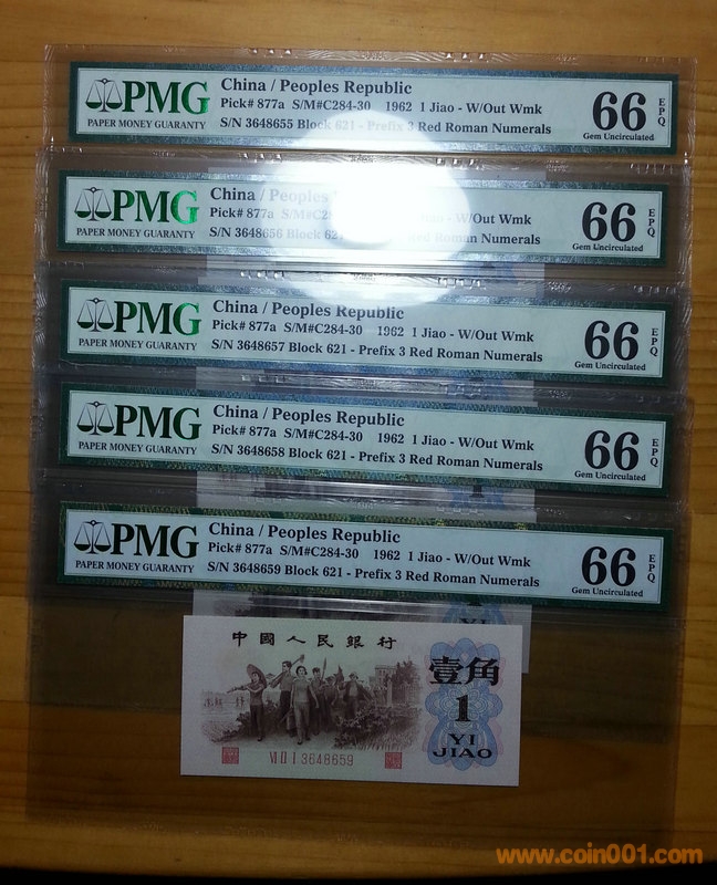 PMG 66EPQ 五連號(hào)背綠,超絕的品相