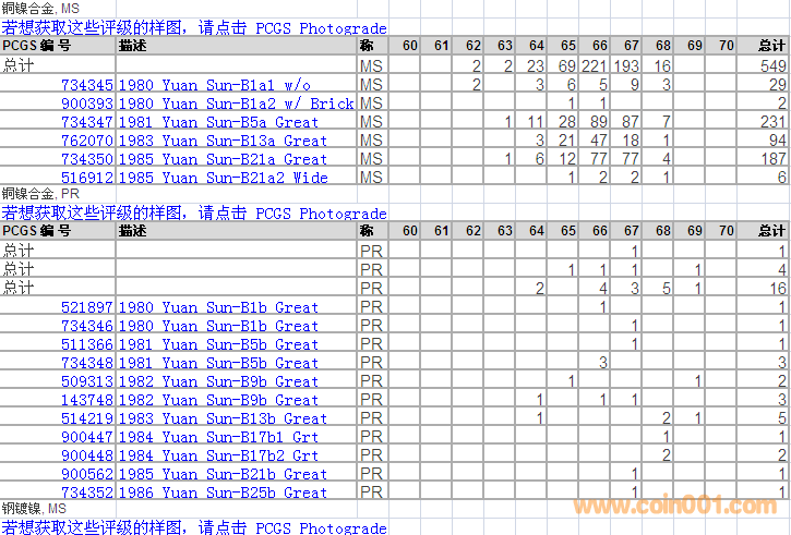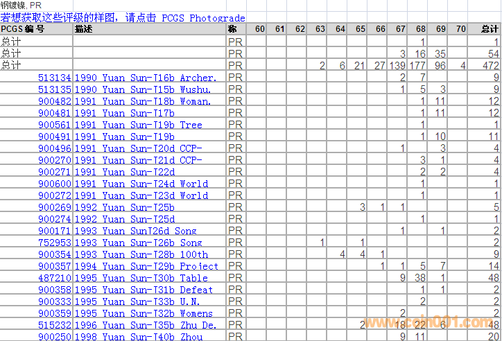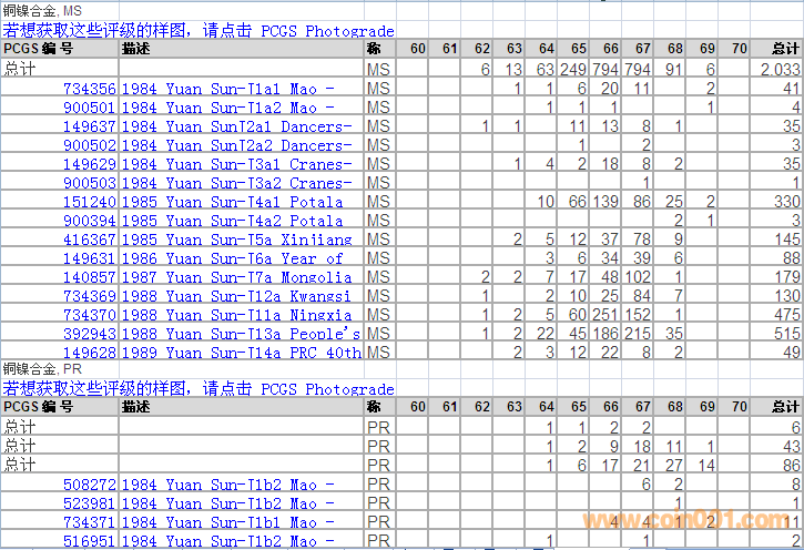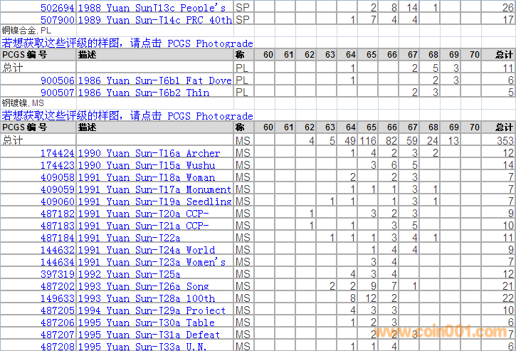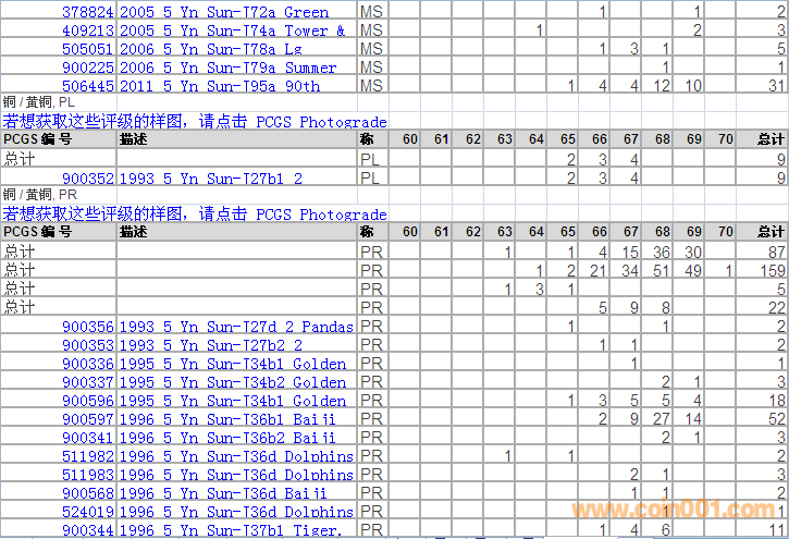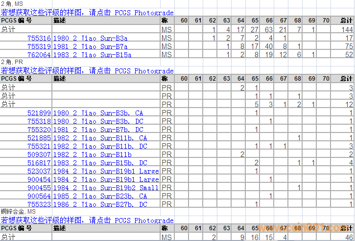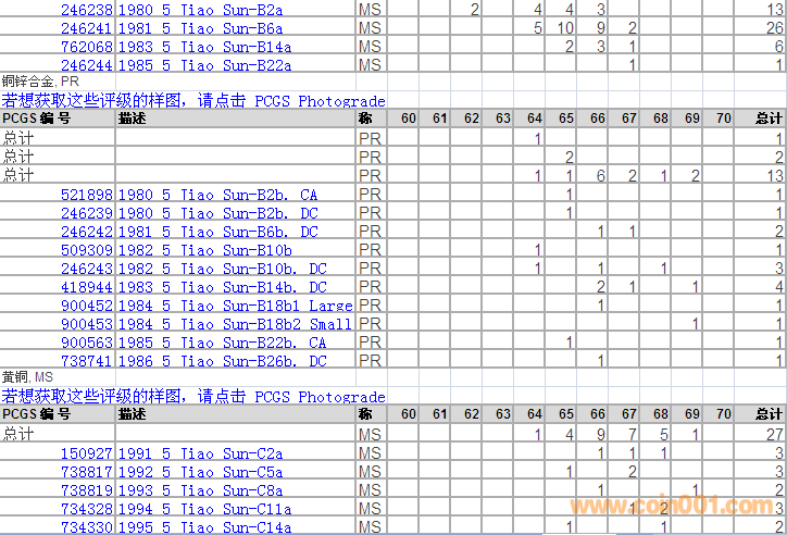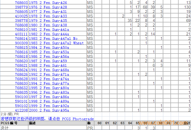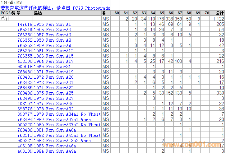 PCGS硬幣評(píng)級(jí)分?jǐn)?shù)分布 ..