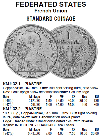 1947年,法屬印度*****,1皮阿斯特,銅鎳幣。