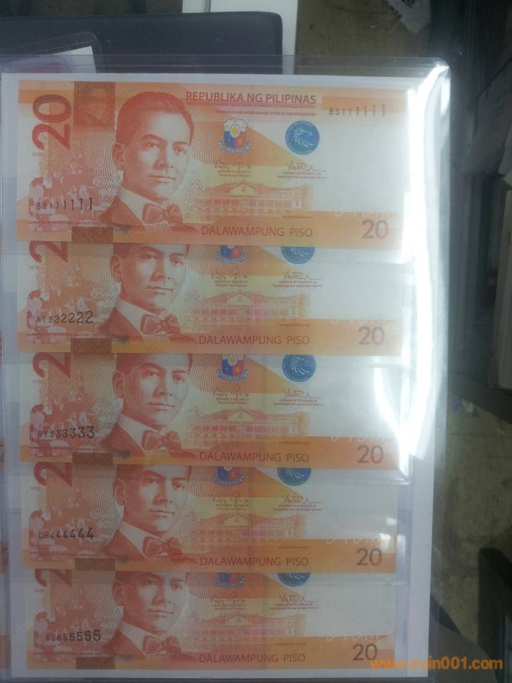 2013" 新版.菲律賓20披索,111111-000000"大全套,1400元