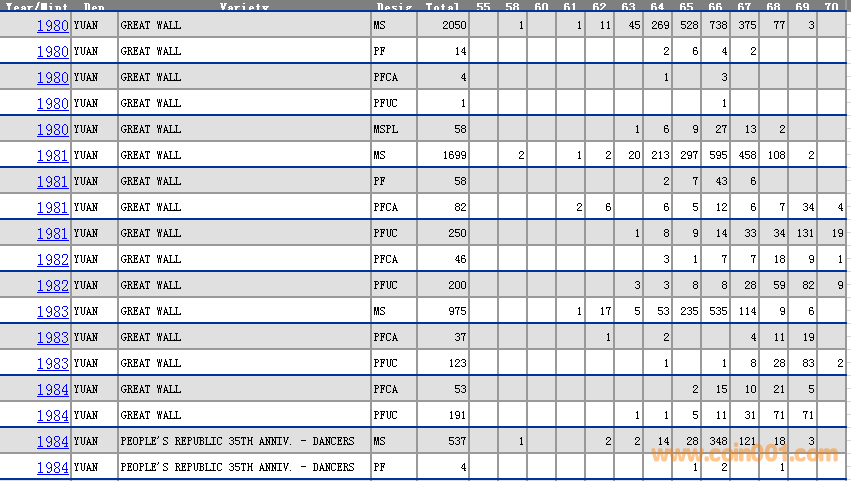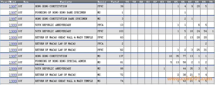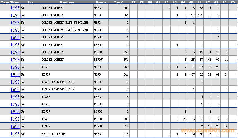 NGC硬幣評(píng)級(jí)分?jǐn)?shù)分布 ..