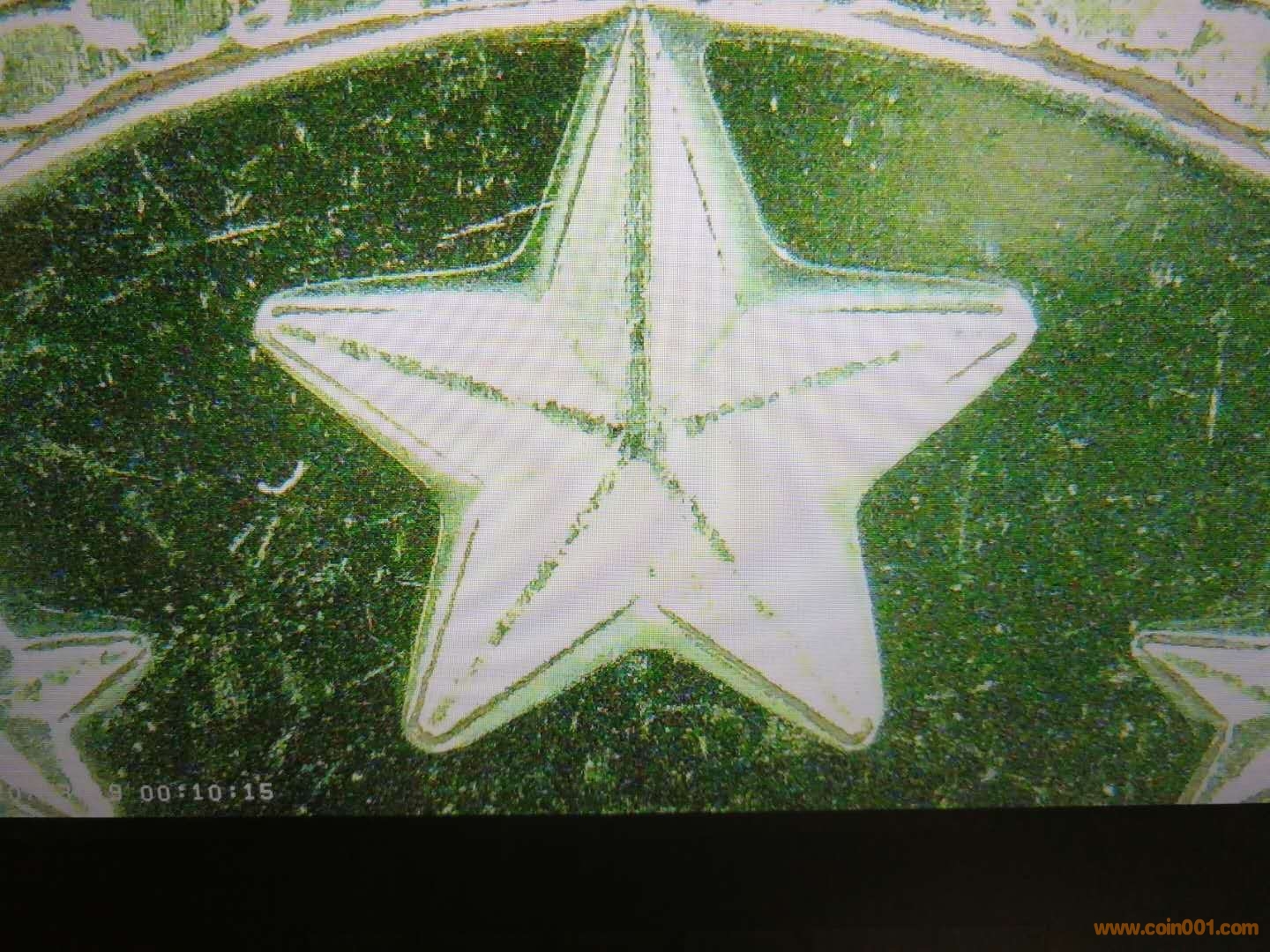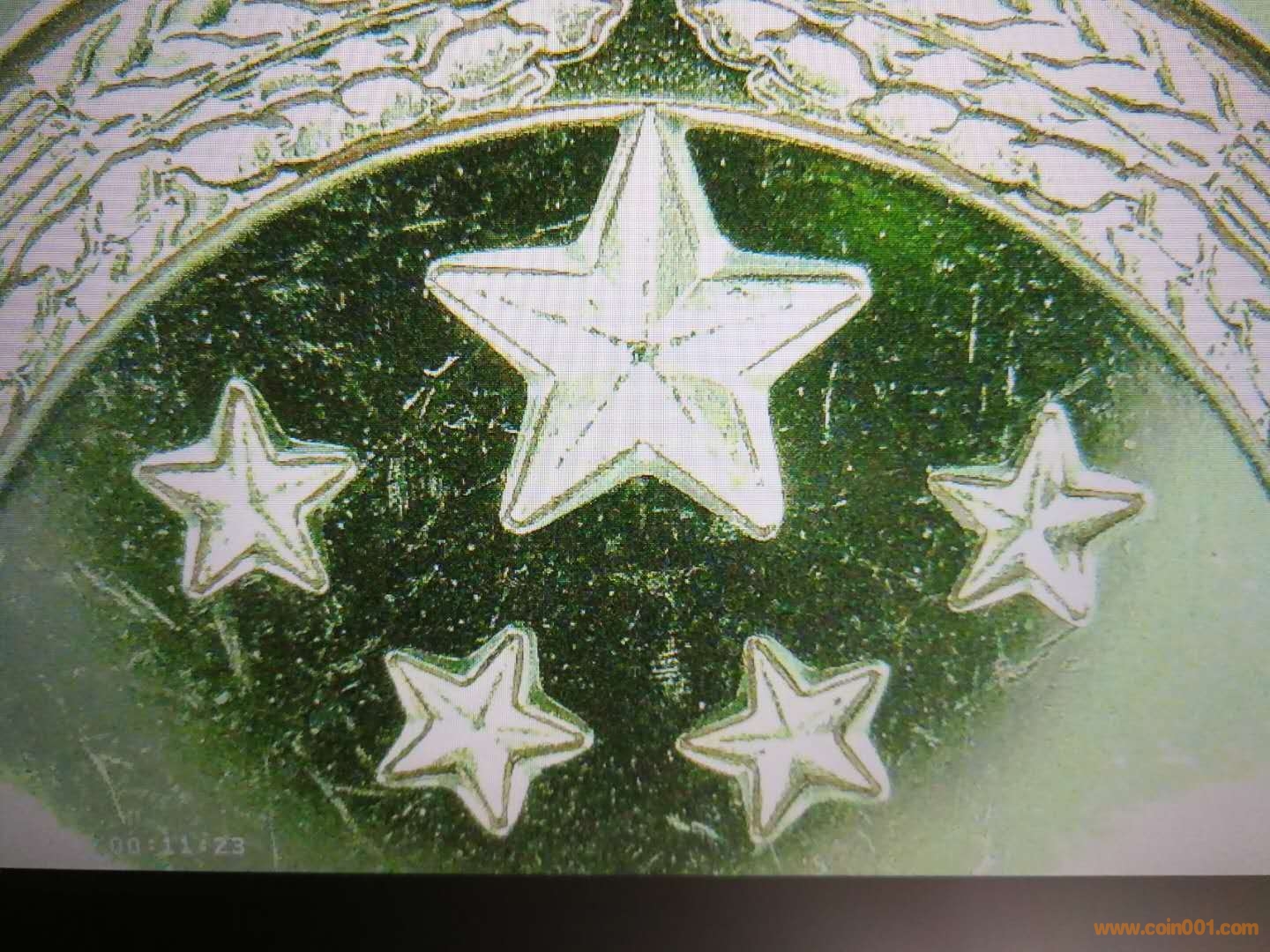 最近的泰山紀(jì)念幣就發(fā)生了類似的情況,銅鋅合金固溶體在壓印時候溫度升高,導(dǎo)致壓印的泰山幣,幣面圖文邊緣出現(xiàn)“析”出熔點低的鋅,導(dǎo)致形成完全不同的幣面圖紋狀況,其幣面如圖: