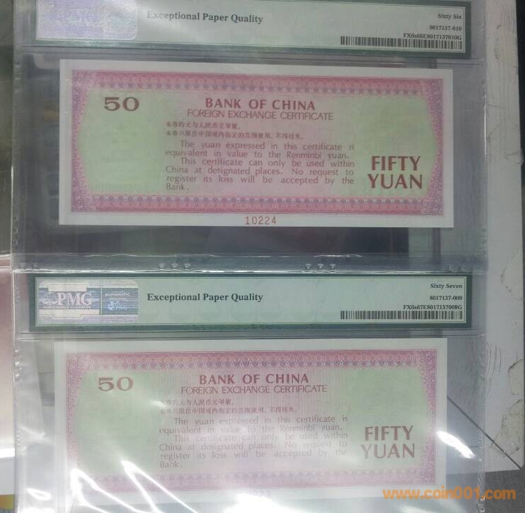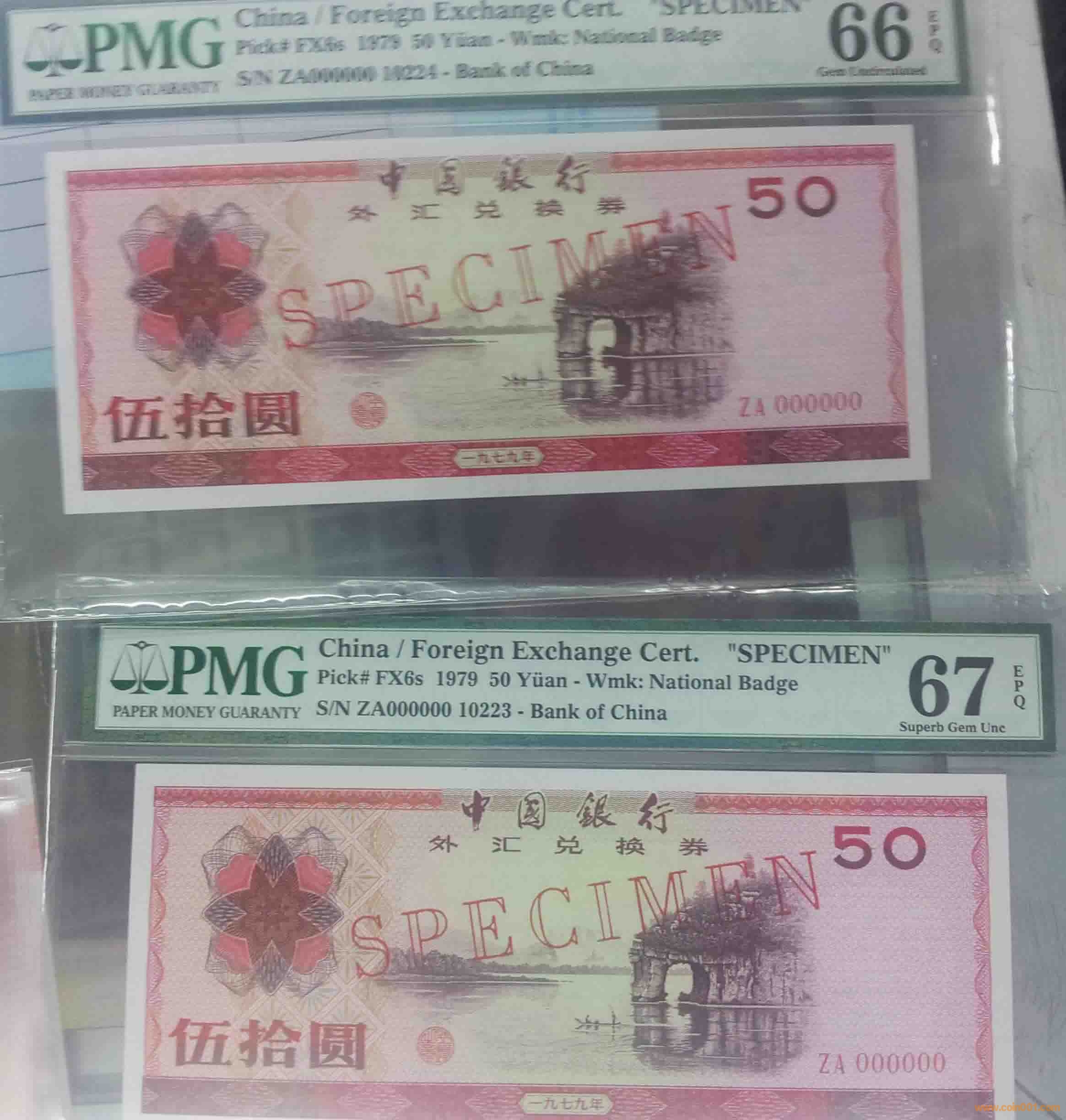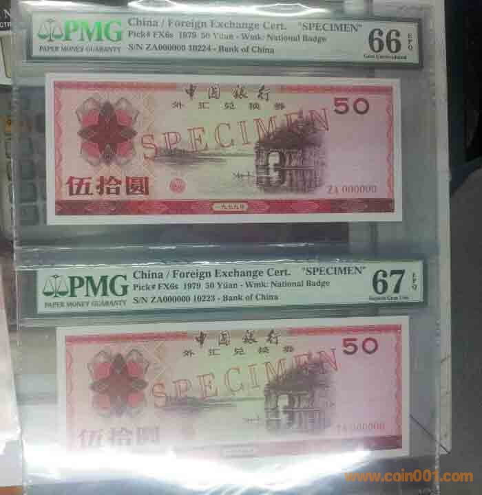 出,1979年,伍拾圓,中國(guó)銀行,外匯兌換券,樣票 PMG,66-67分