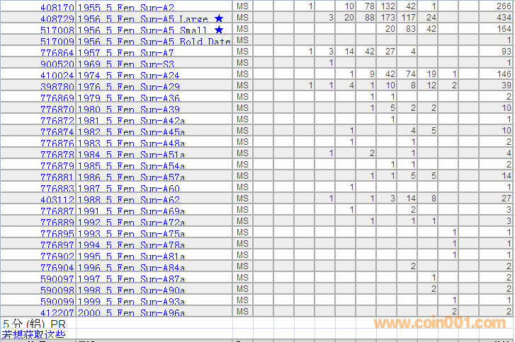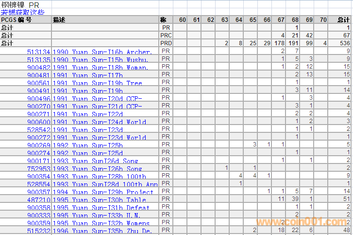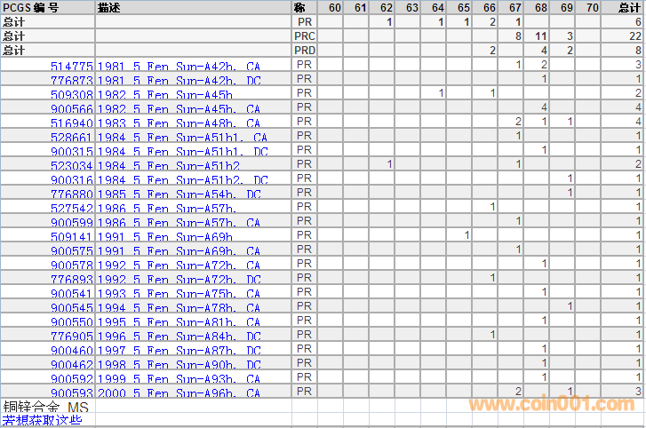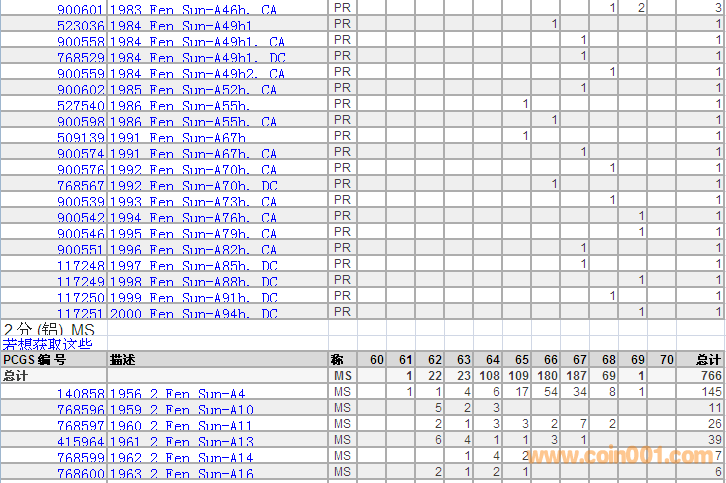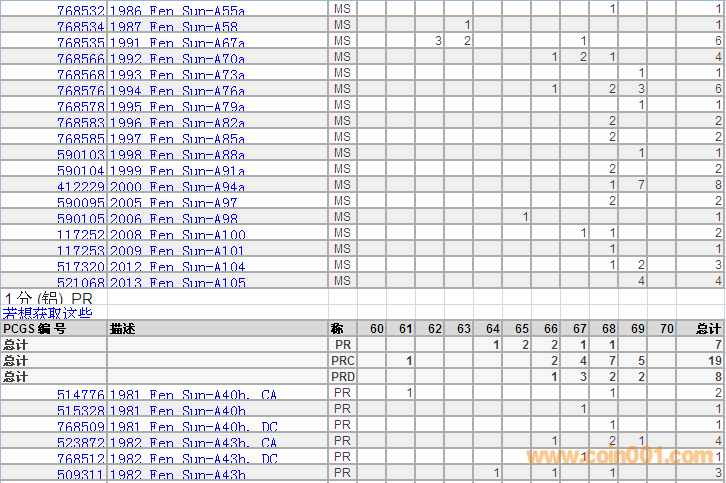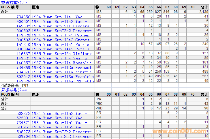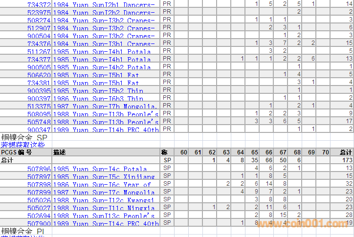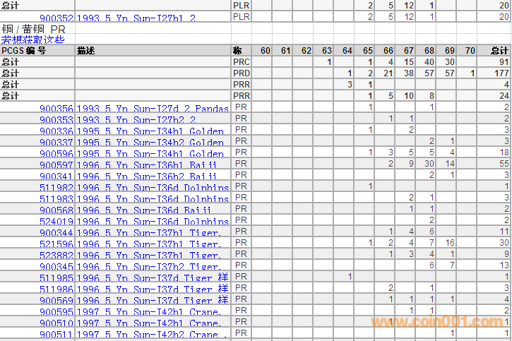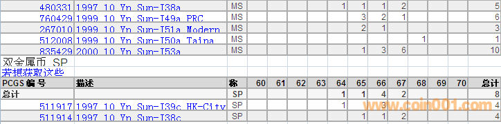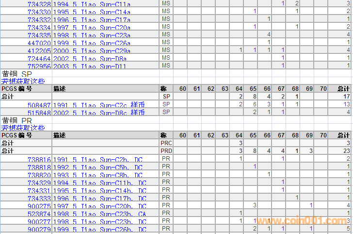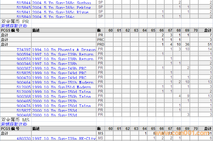 PCGS硬幣評級分數(shù)分布 ..