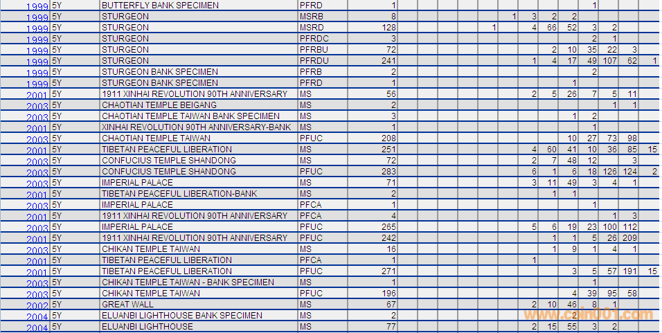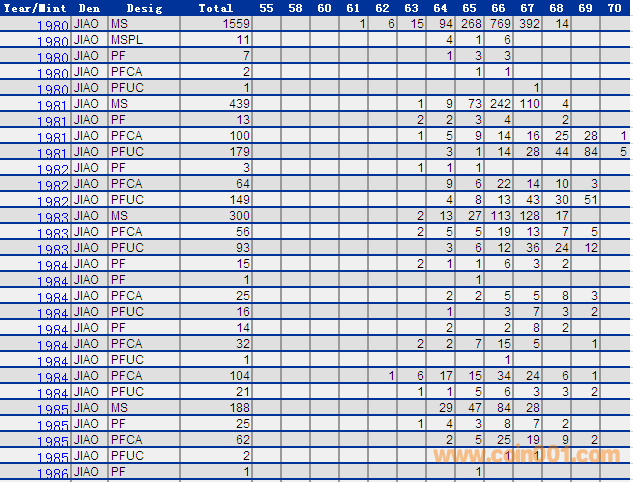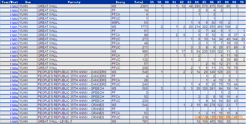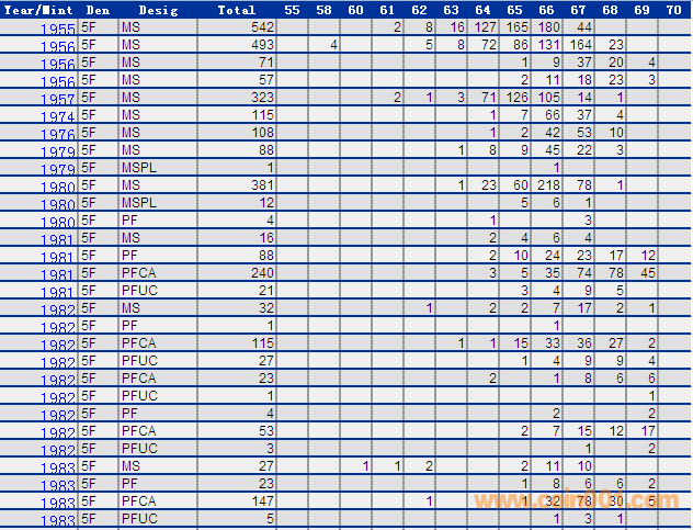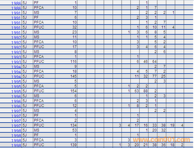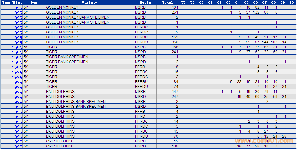 NGC硬幣評級分數分布 ..