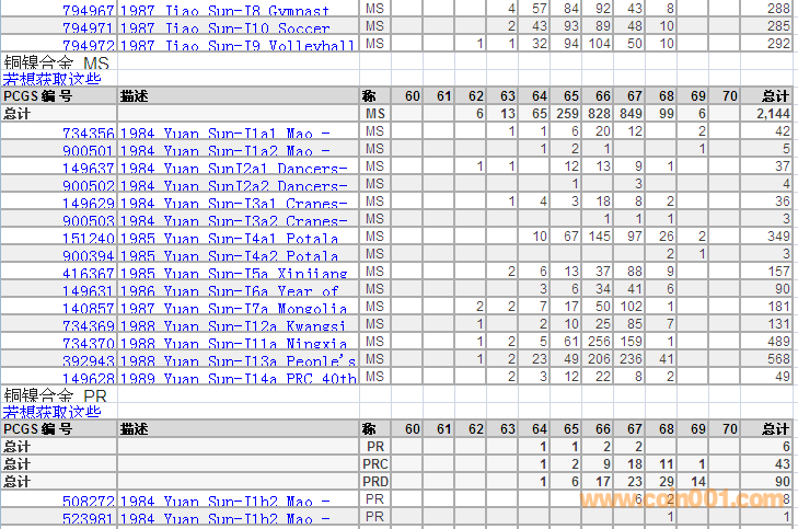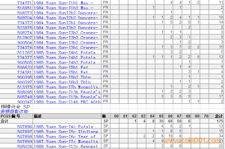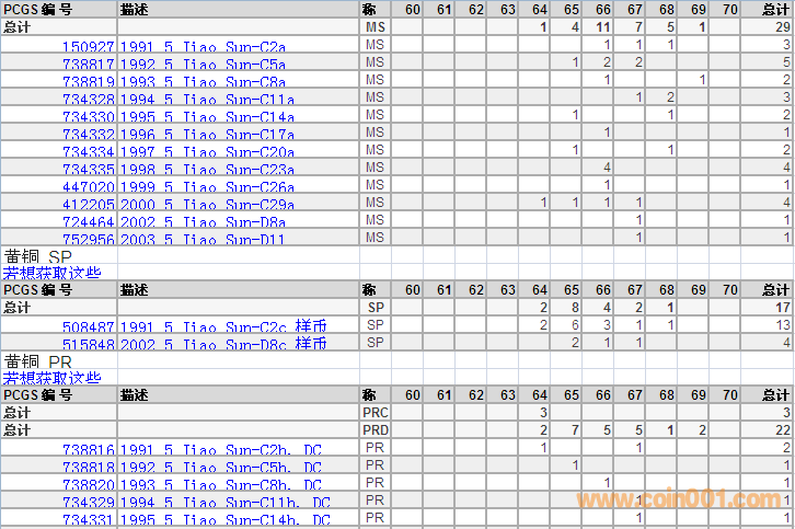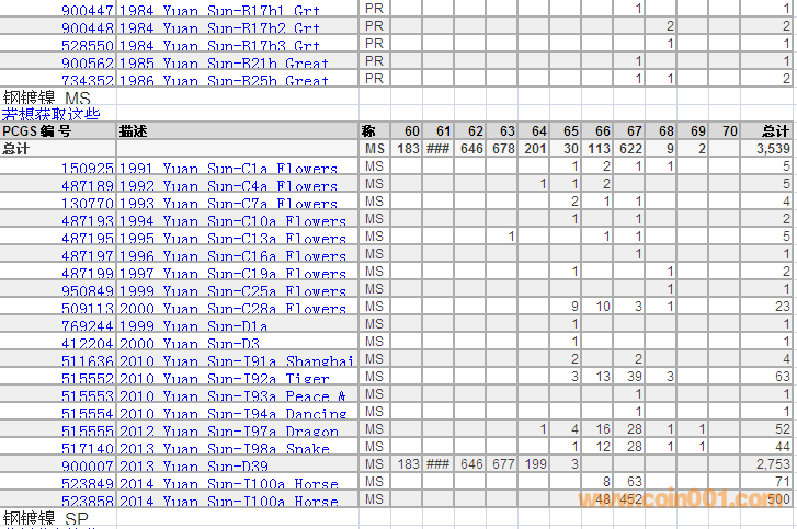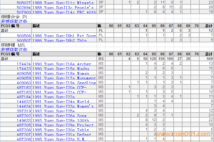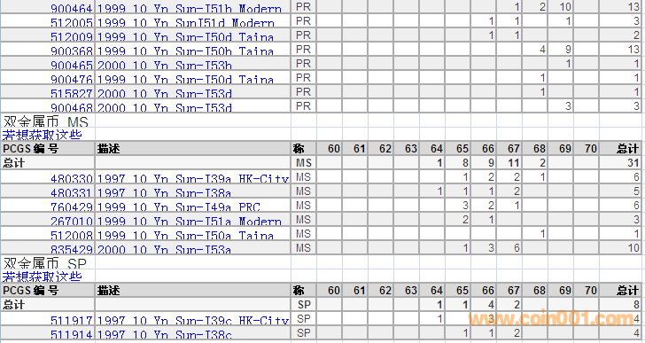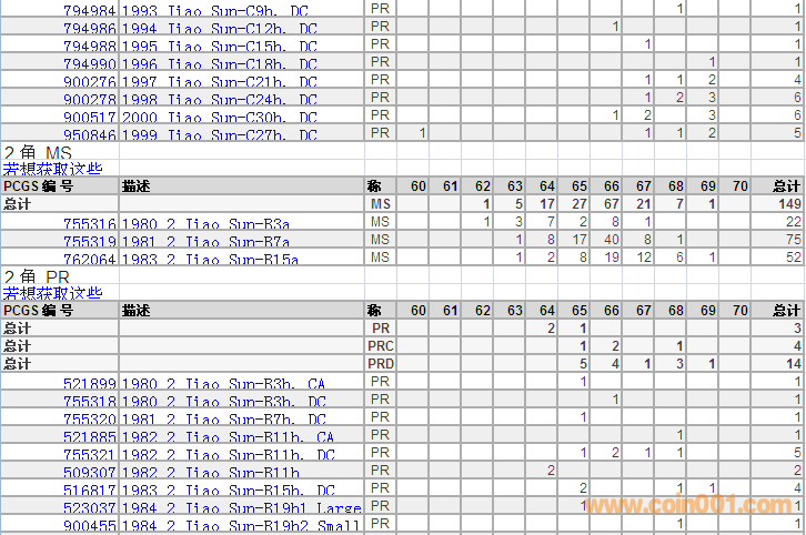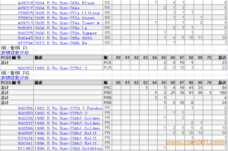 PCGS硬幣評(píng)級(jí)分?jǐn)?shù)分布 ..