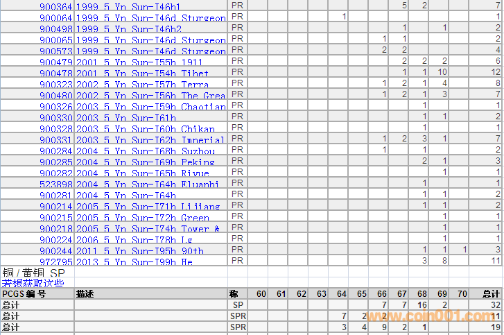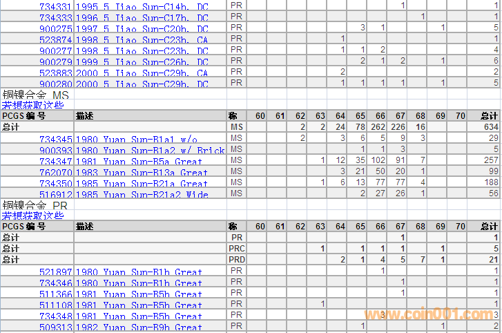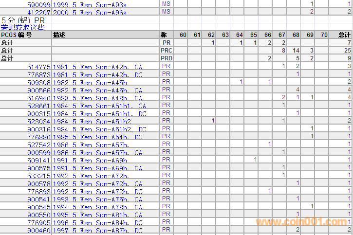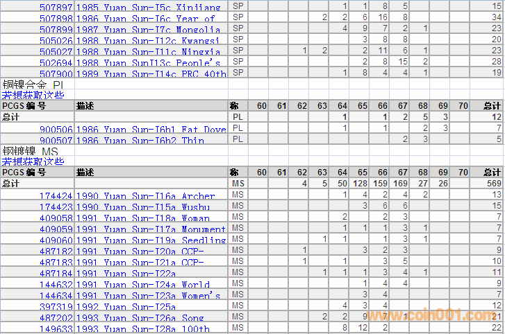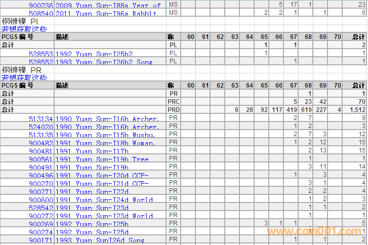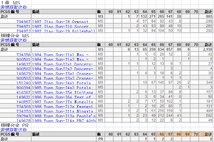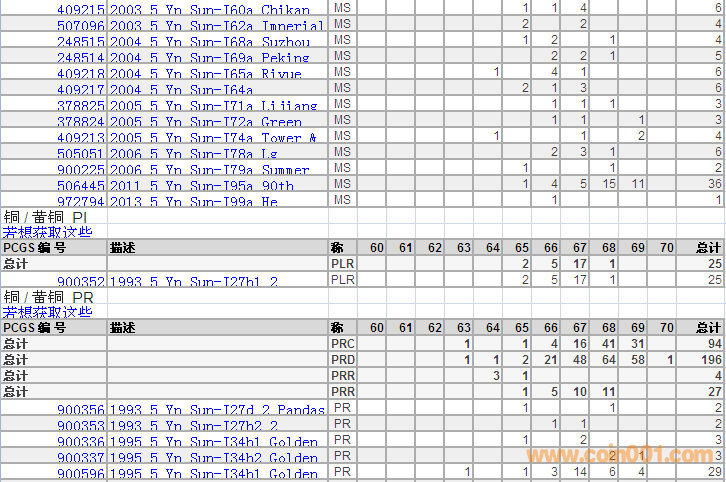 PCGS硬幣評(píng)級(jí)分?jǐn)?shù)分布 ..