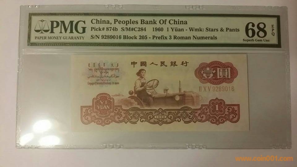 1960年,壹圓拖拉機古幣,II,XV,9289016,PMG,68,EPQ   3600元