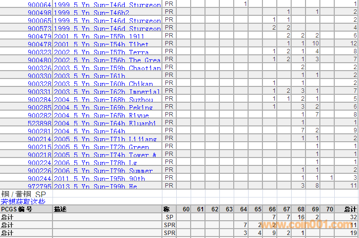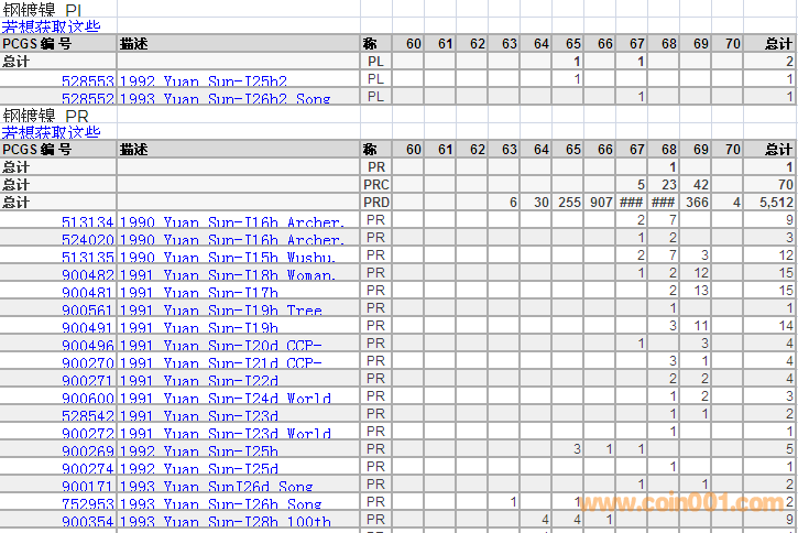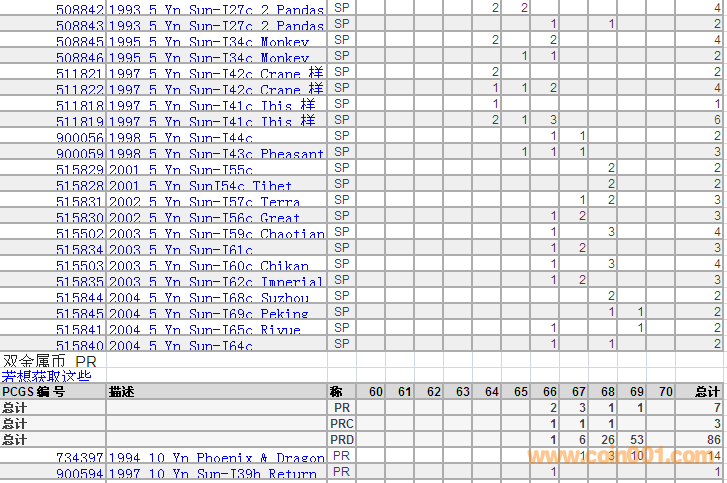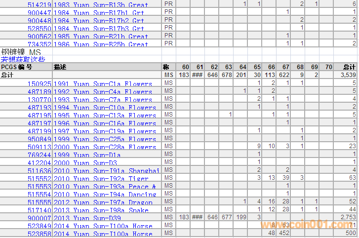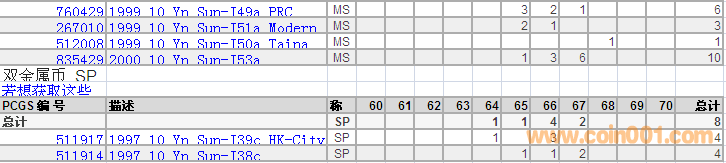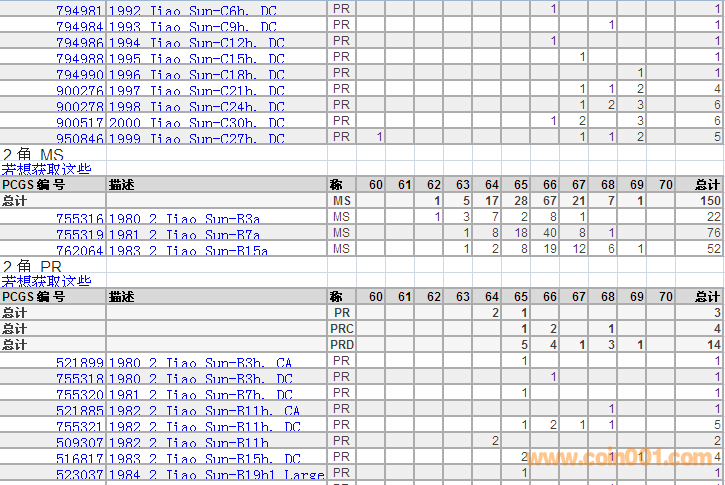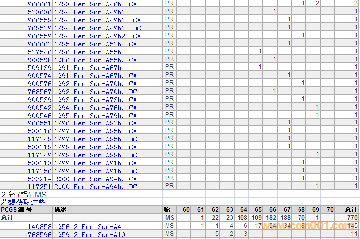 PCGS硬幣評級分數(shù)分布 ..