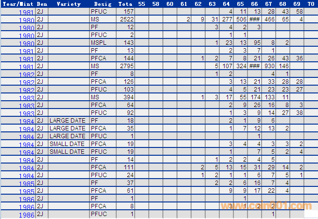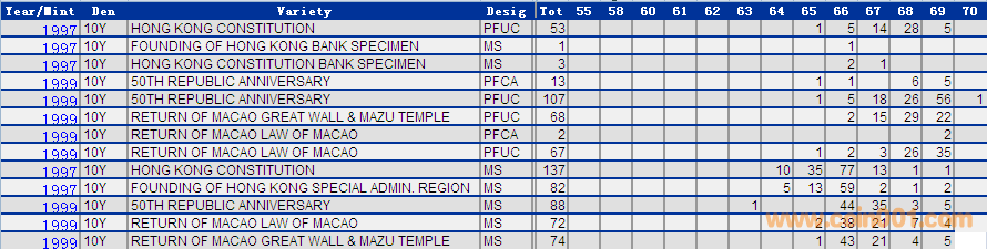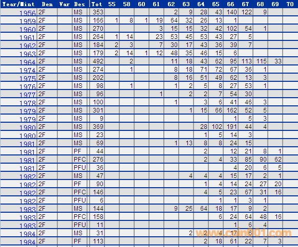 NGC硬幣評級分數(shù)分布 ..