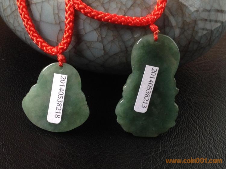 觀音笑佛吊墜一對,88元起拍,每次加價1元以上,12月20日22:30分結拍! 中拍者請在48小時內付款!支持淘寶和中介交易!歡迎各位朋友參拍,謝謝! 寶貝詳請: 【材質】天然A貨翡翠. 【尺寸】觀音最高處約34-40mm最寬處約22-24mm 厚約4-6mm,重量參考每個證書;笑佛最高處約23-26mm最寬處約22-24mm 厚約4-6mm,如一元硬幣大小,重量參考每個證書. 【贈品】精美首飾盒+精美掛繩+精美禮袋+證書. 【快遞】包郵,發(fā)匯通快遞!