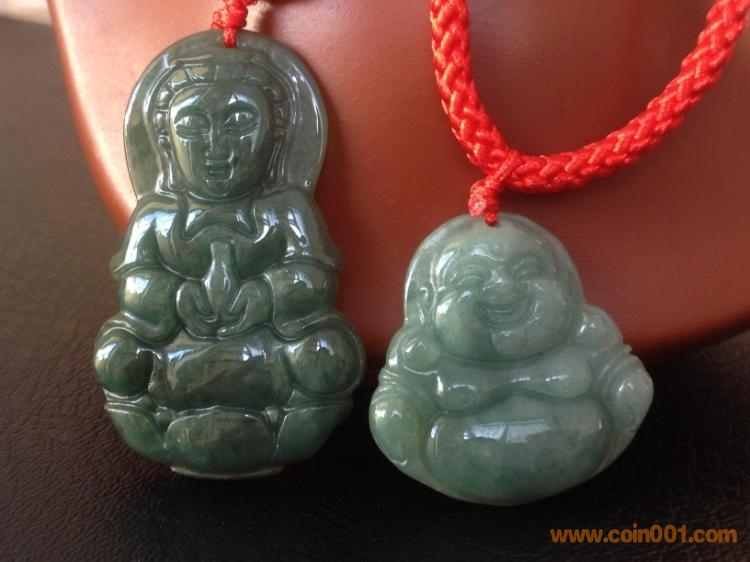 拍翡翠A貨觀音笑佛吊墜一對