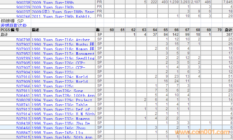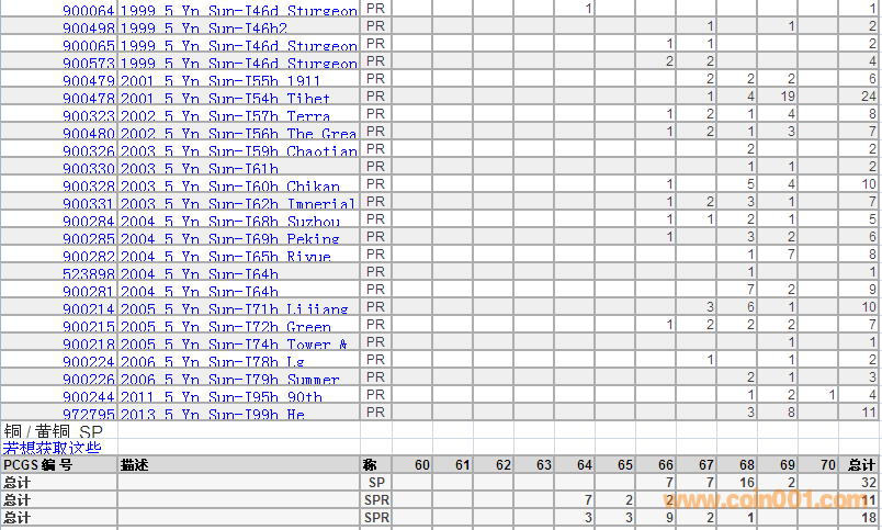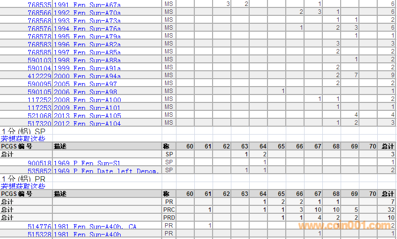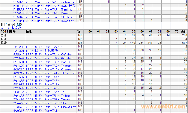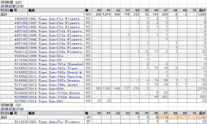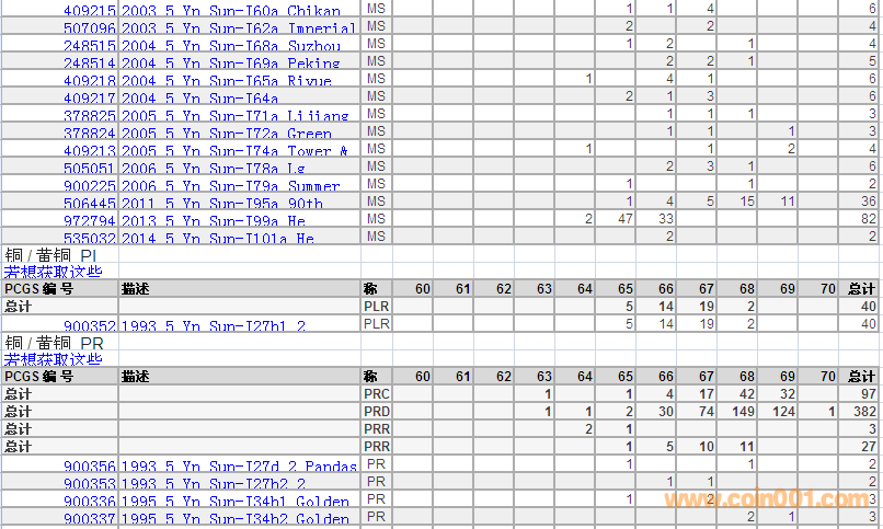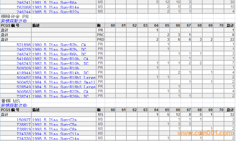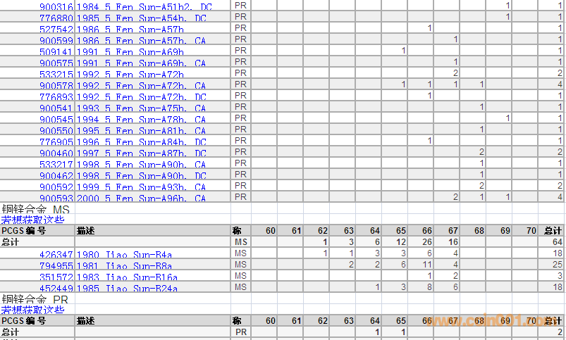 PCGS硬幣評(píng)級(jí)分?jǐn)?shù)分布 ..