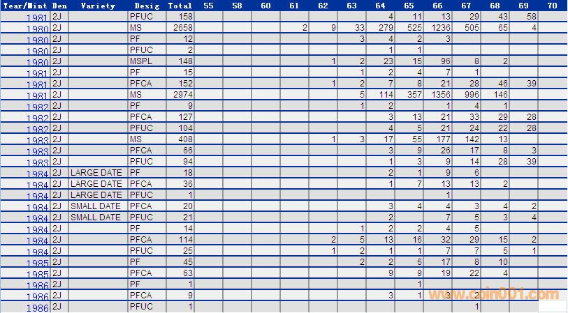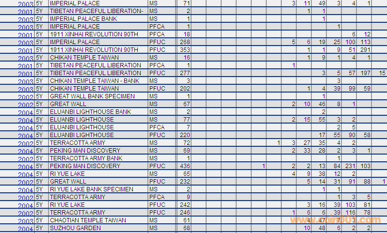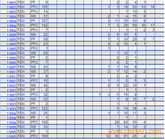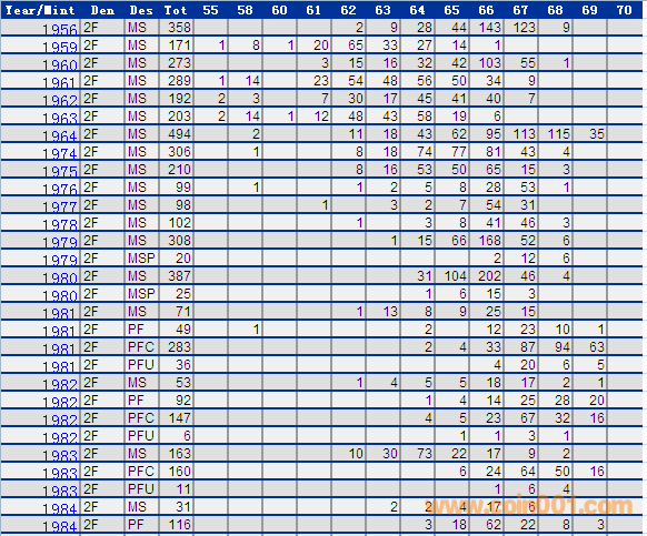 NGC硬幣評級分數(shù)分布 ..